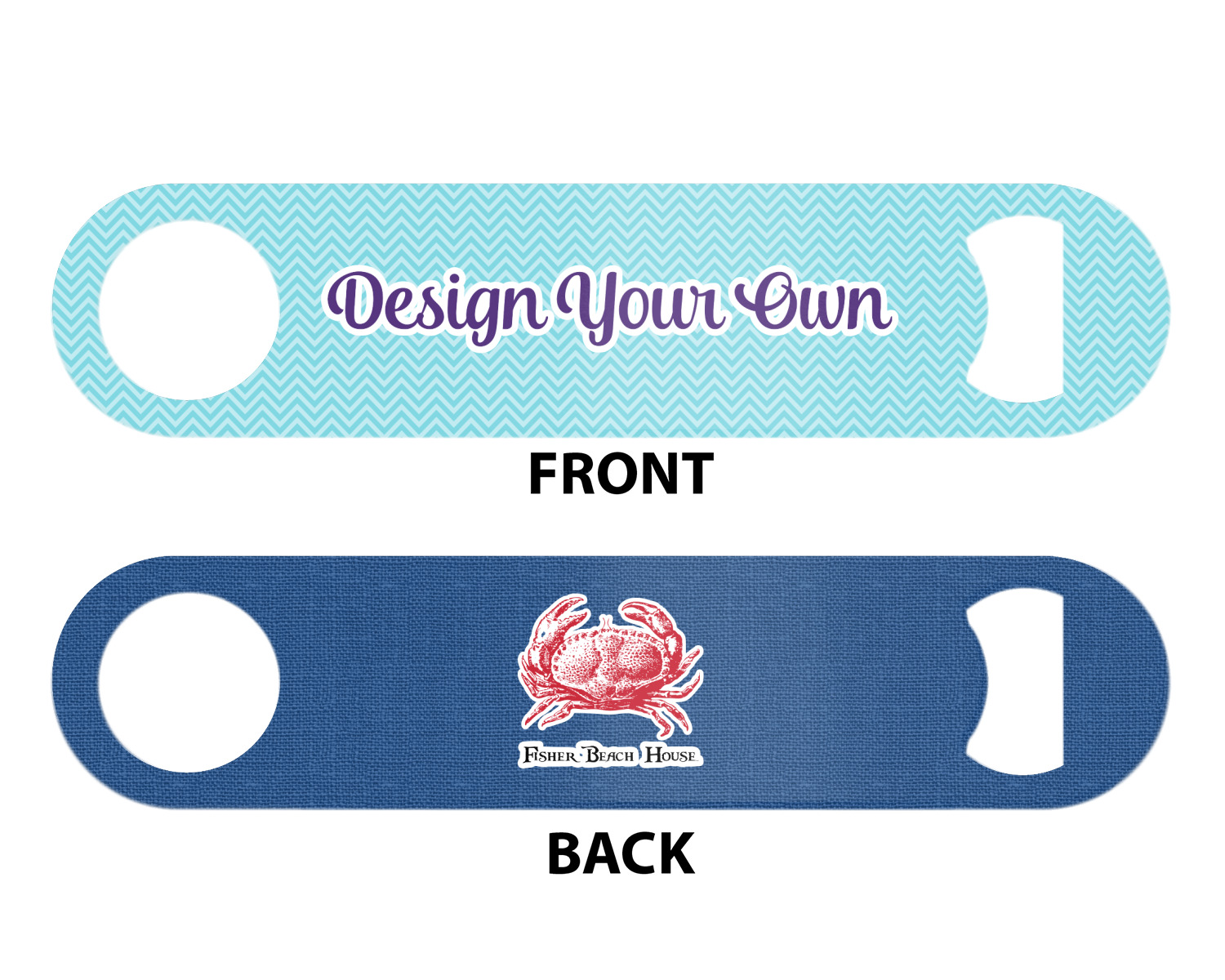 Stop struggling with the caps or your bottled beverages by purchasing one of our personalized bottle openers! These wrench-like custom bar blades are built to last. Customize one for your home's bar, or as a practical gift for a loved one!