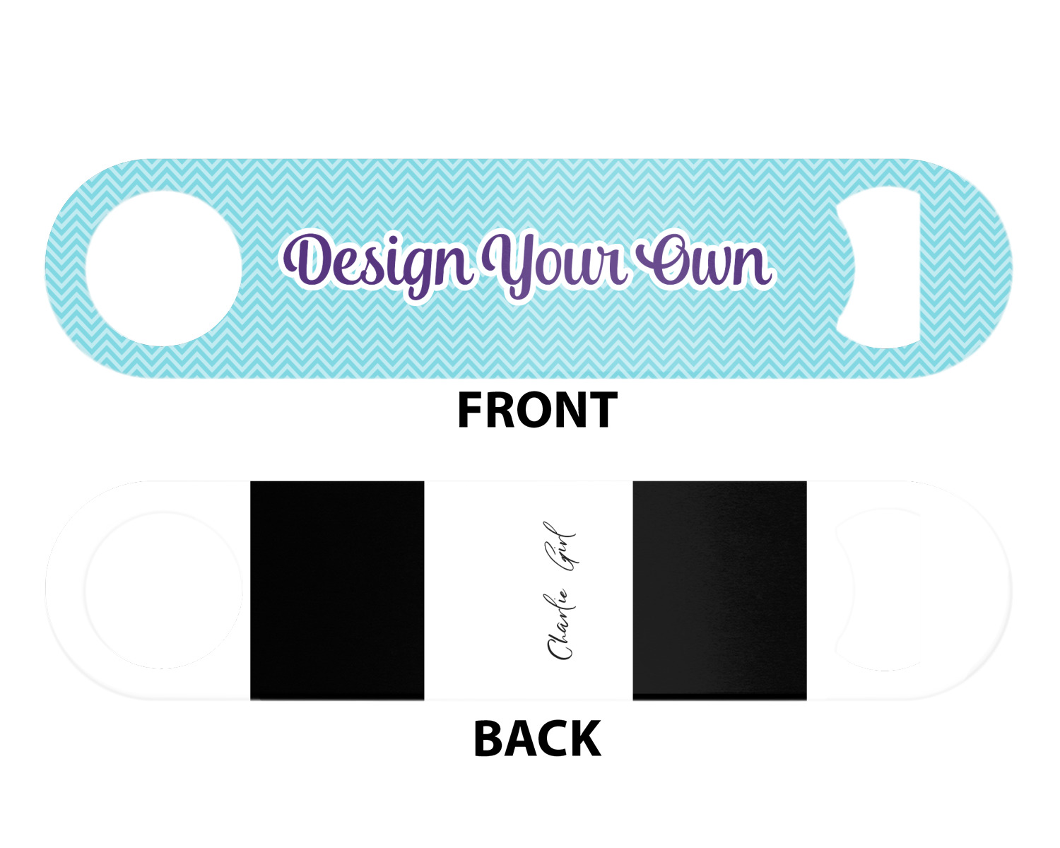 Made from stainless steel, these beer bottle openers are 7 by 1.625 inches, giving you plenty of leverage when trying to open a stubborn bottle. On one end of this personalized bottle opener, you'll find a circular hole for you to hang and display your opener. On the opposite end, you'll find the tool used for opening bottles. This opener in particular has the same structure and style as professional bartender bottle openers. Your customization is sublimated onto both the back and front, and both sides can be customized individually. Choose from one of our two base colors - white or silver.