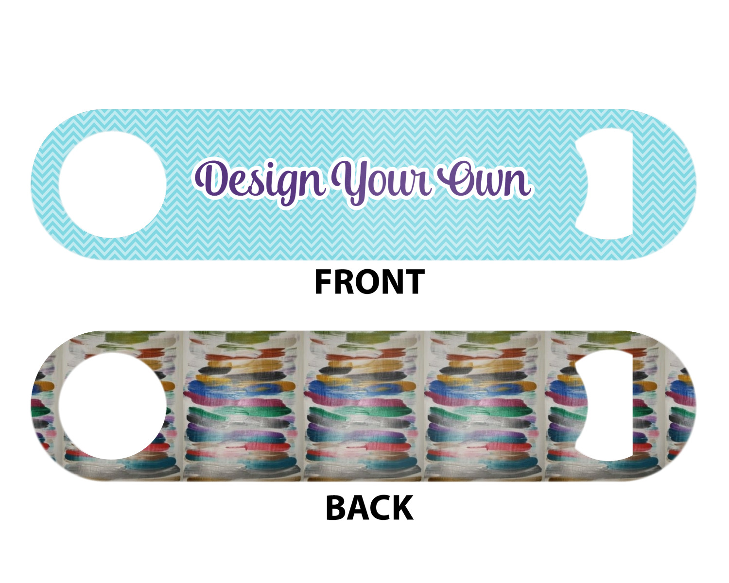 Made from stainless steel, these beer bottle openers are 7 by 1.625 inches, giving you plenty of leverage when trying to open a stubborn bottle. On one end of this personalized bottle opener, you'll find a circular hole for you to hang and display your opener. On the opposite end, you'll find the tool used for opening bottles. This opener in particular has the same structure and style as professional bartender bottle openers. Your customization is sublimated onto both the back and front, and both sides can be customized individually. Choose from one of our two base colors - white or silver.