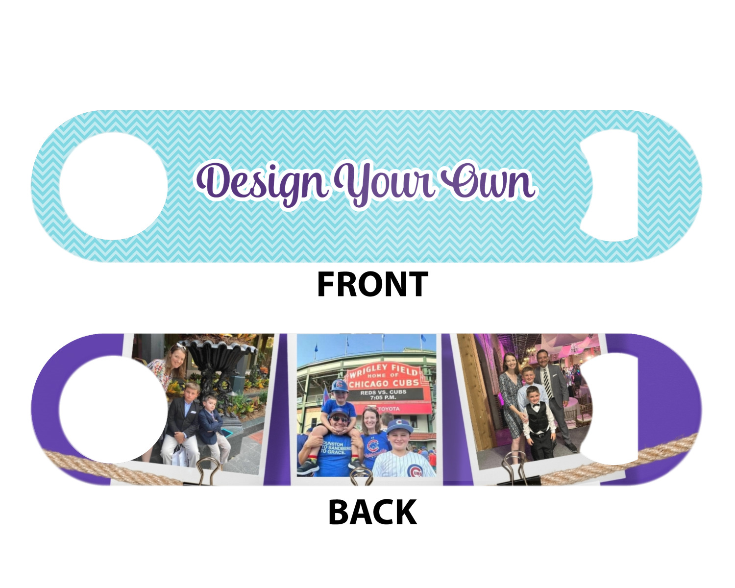 Stop struggling with the caps or your bottled beverages by purchasing one of our personalized bottle openers! These wrench-like custom bar blades are built to last. Customize one for your home's bar, or as a practical gift for a loved one!