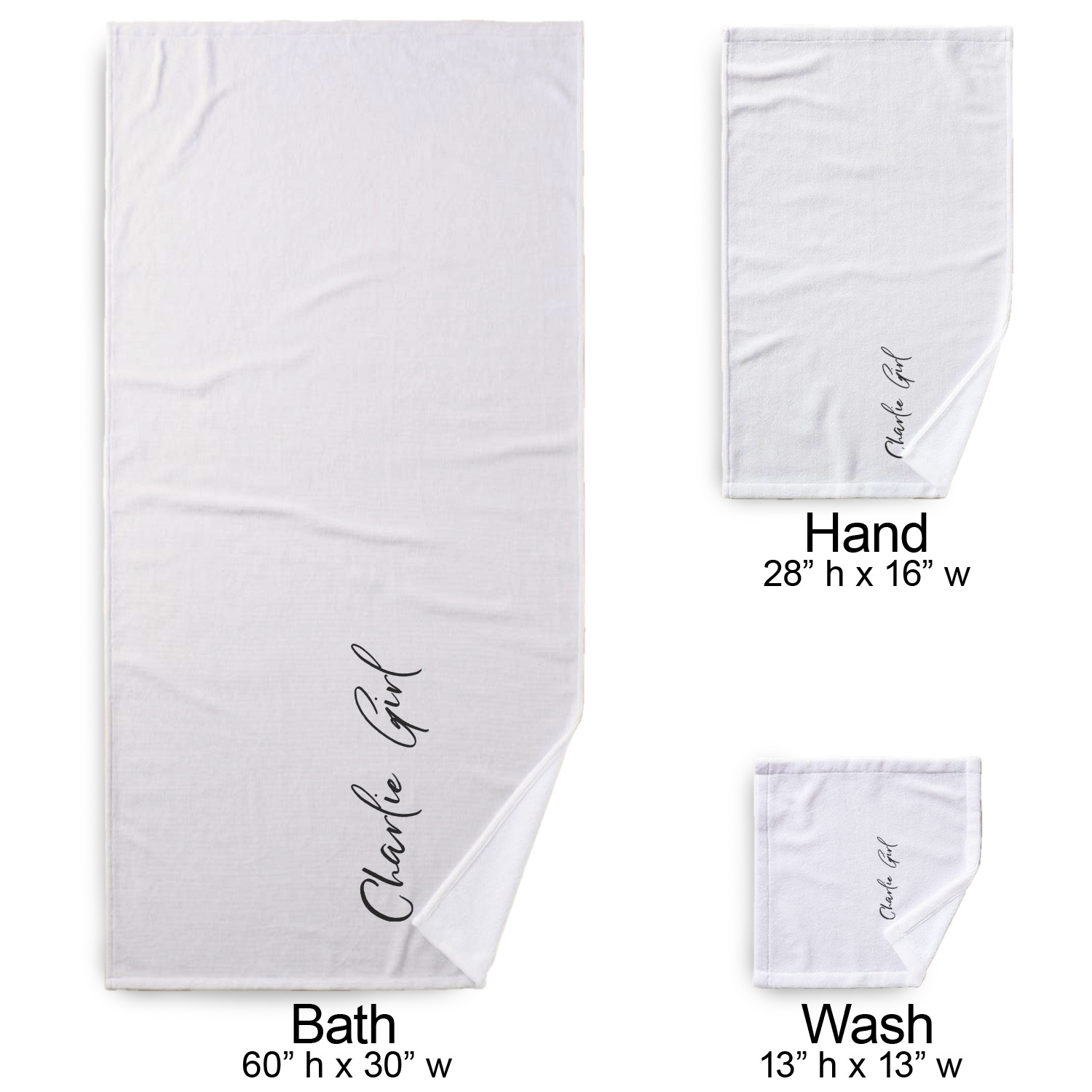 | Product Dimensions | Bath Towel (Approx. 30" x 60") Hand Towel (Approx. 16" x 28") Wash Cloth (Approx. 13" x 13") |