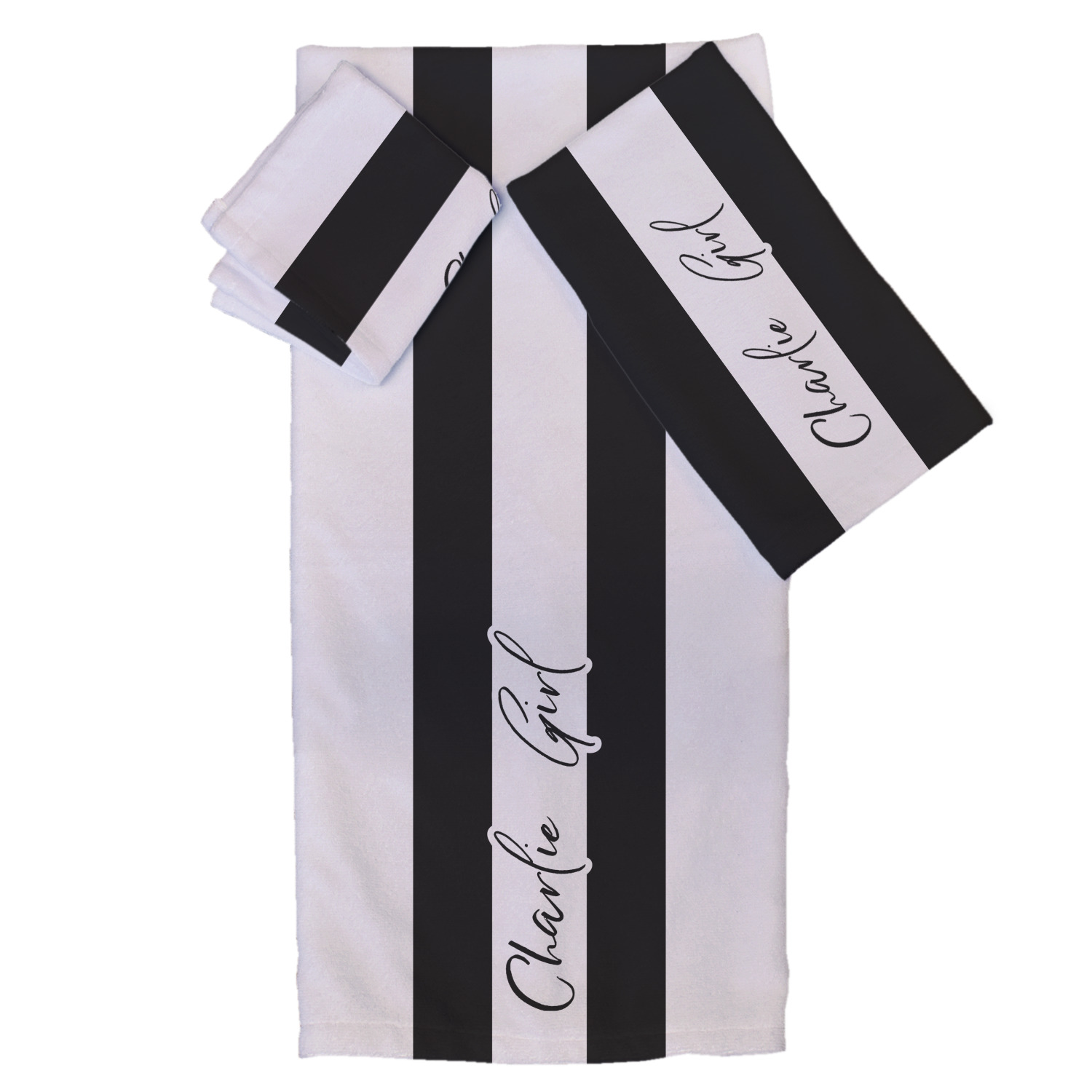 This customizable 3 pc bath towel set is the perfect combination of beauty and function when it comes to towels. The towel set is perfect for kids and adults alike. Kids love personalized products - so design and gift a child in your life with a set of towels that will match the theme or color of their bathroom or bedroom.