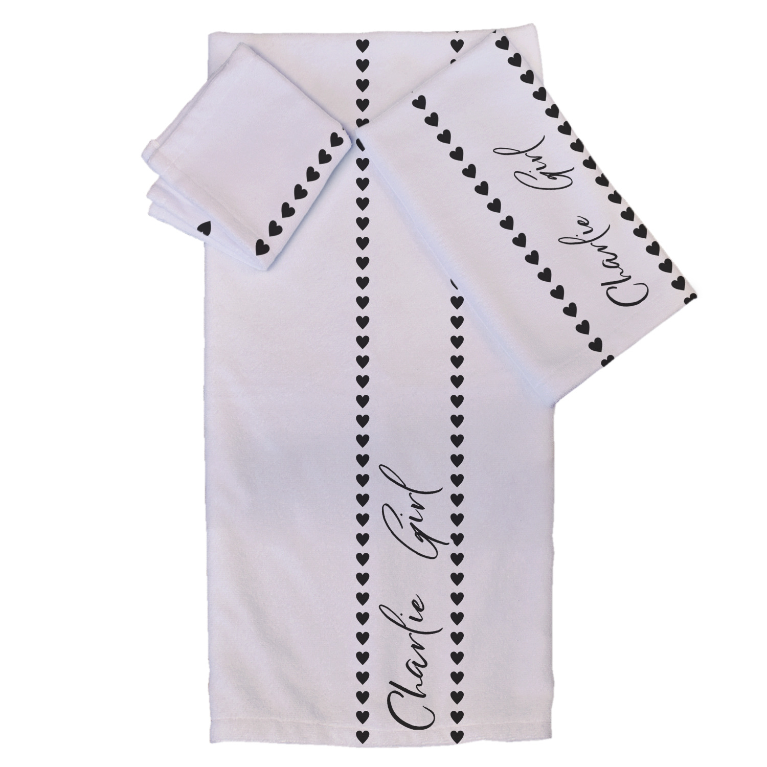 This customizable 3 pc bath towel set is the perfect combination of beauty and function when it comes to towels. The towel set is perfect for kids and adults alike. Kids love personalized products - so design and gift a child in your life with a set of towels that will match the theme or color of their bathroom or bedroom.