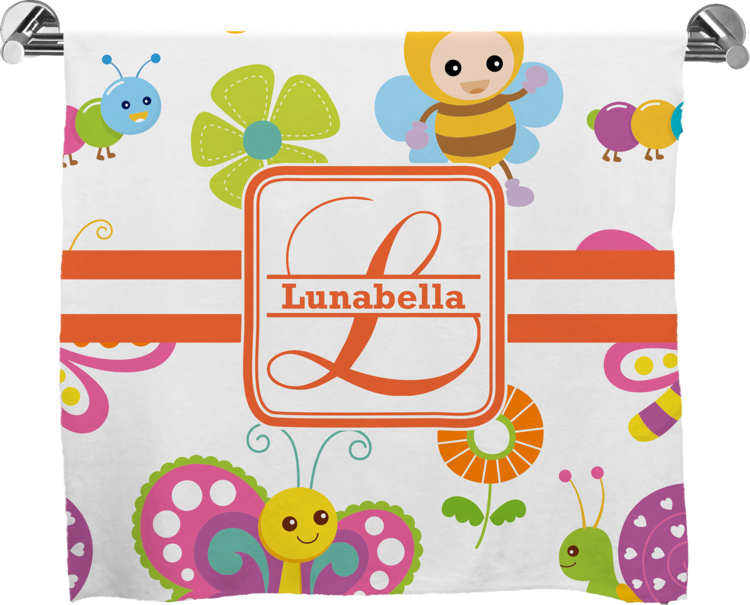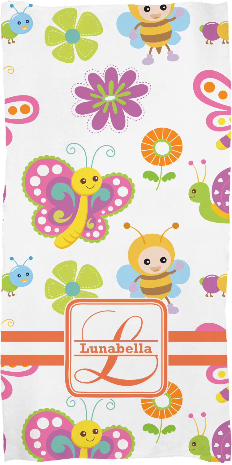 These customized bath towels are slightly larger than your standard towel and are the ideal size for wrapping around your body. They measure approximately 60" x 30". Your customization is displayed across the entire front face of the towel, while the back is white.
