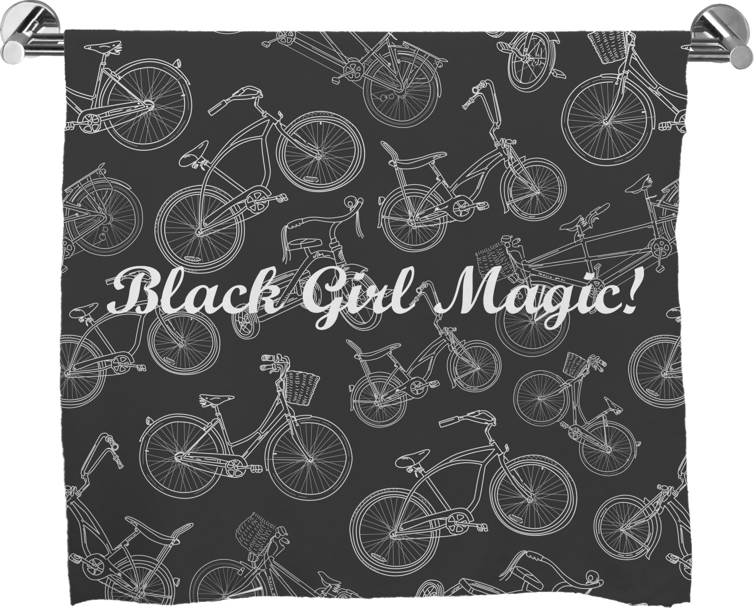 These customized bath towels are slightly larger than your standard towel and are the ideal size for wrapping around your body. They measure approximately 60" x 30". Your customization is displayed across the entire front face of the towel, while the back is white.