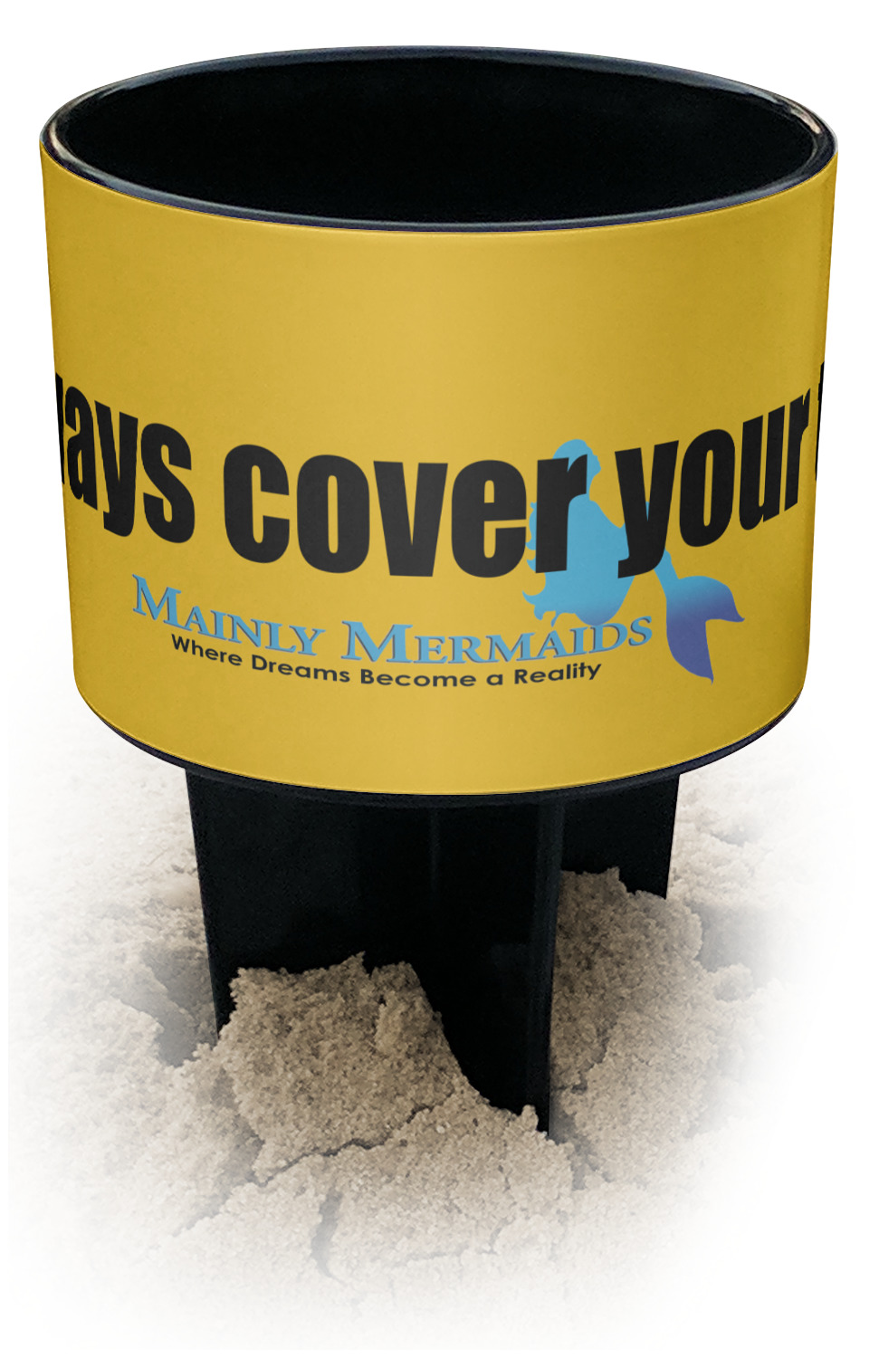 This cup holder has a large stake at its bottom that anchors it to the sand or ground below, while the cup holder rests above the stake. The entire drink holder is made of durable plastic and displays your customization around the cup holder portion. We sell these personalized beach spikers in two different colors: black and white.