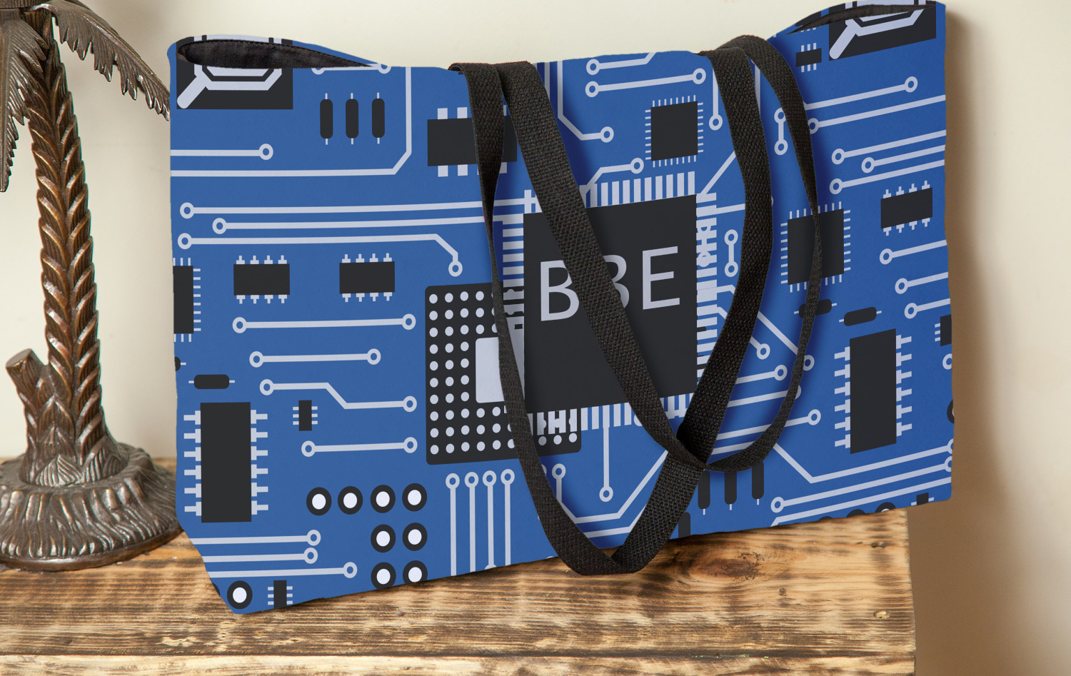 These beach totes are handmade here in the USA. Fabric is printed with your design. The tote is then sewn from the fabric pieces, lining and handles added.