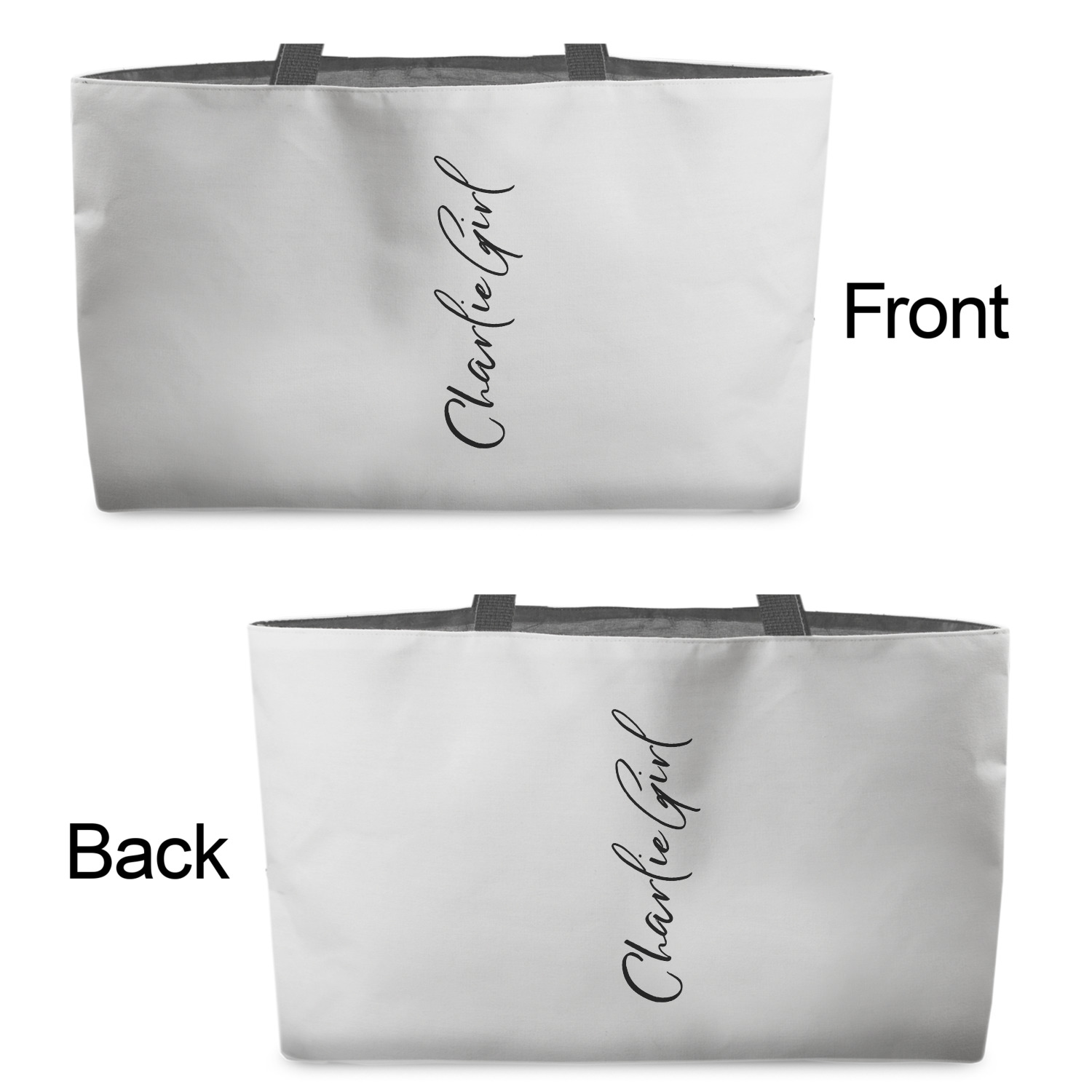 You can design the totes with a design on the front and another one on the back. The two designs can be identical or completely different. The choice is yours.