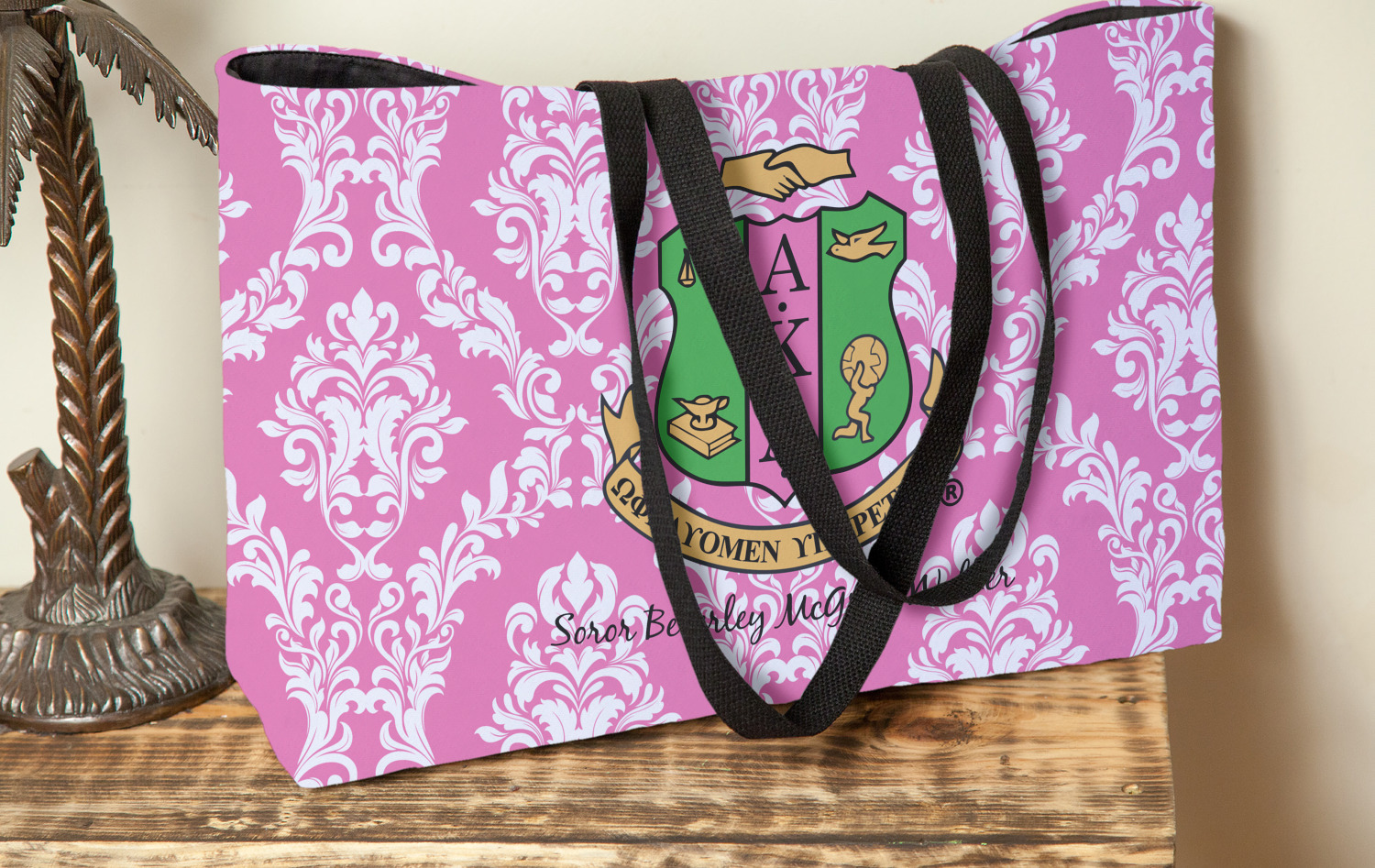 These beach totes are handmade here in the USA. Fabric is printed with your design. The tote is then sewn from the fabric pieces, lining and handles added.