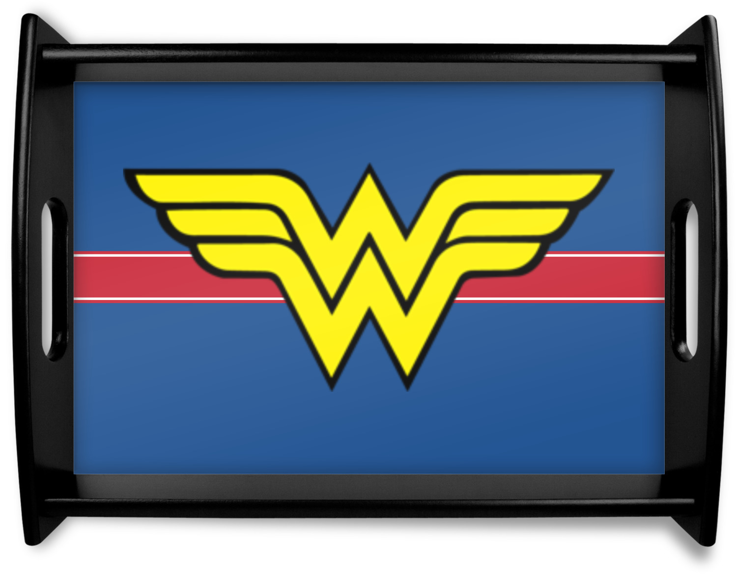 This serving tray with handles features square edges and two rounded sides, creating a very modern look. Each side is fabricated from a beautifully cut, natural wood. The bottom of the interior of the tray displays your customized design in bright, vibrant color. The tray is sold in both a black color and a natural wood look. Each variation of the wood serving tray has two sizes: Small, which is 14" x 10" x 2.25", and Large, which is 19.5" x 13.5" x 2.75".