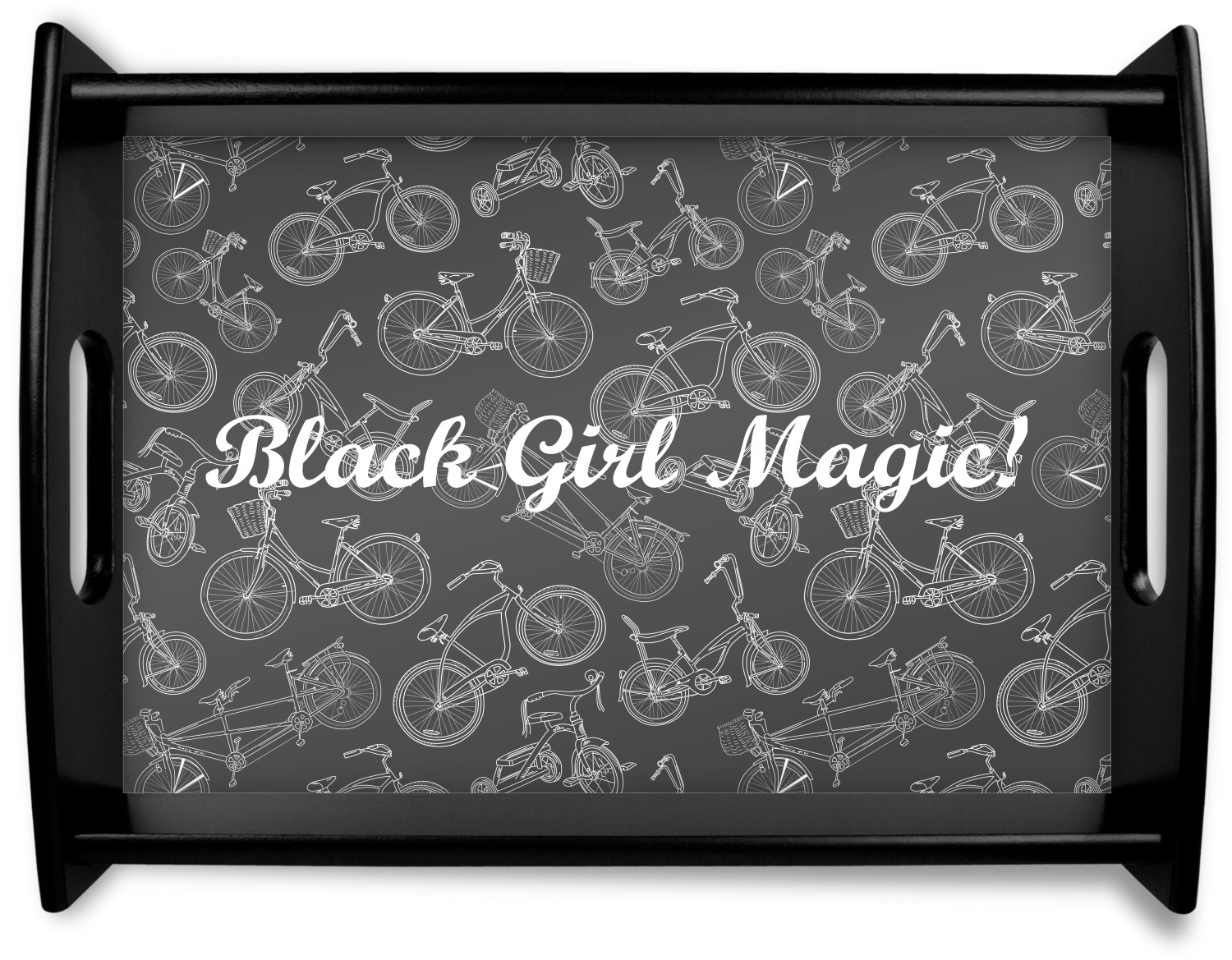 This serving tray with handles features square edges and two rounded sides, creating a very modern look. Each side is fabricated from a beautifully cut, natural wood. The bottom of the interior of the tray displays your customized design in bright, vibrant color. The tray is sold in both a black color and a natural wood look. Each variation of the wood serving tray has two sizes: Small, which is 14" x 10" x 2.25", and Large, which is 19.5" x 13.5" x 2.75".
