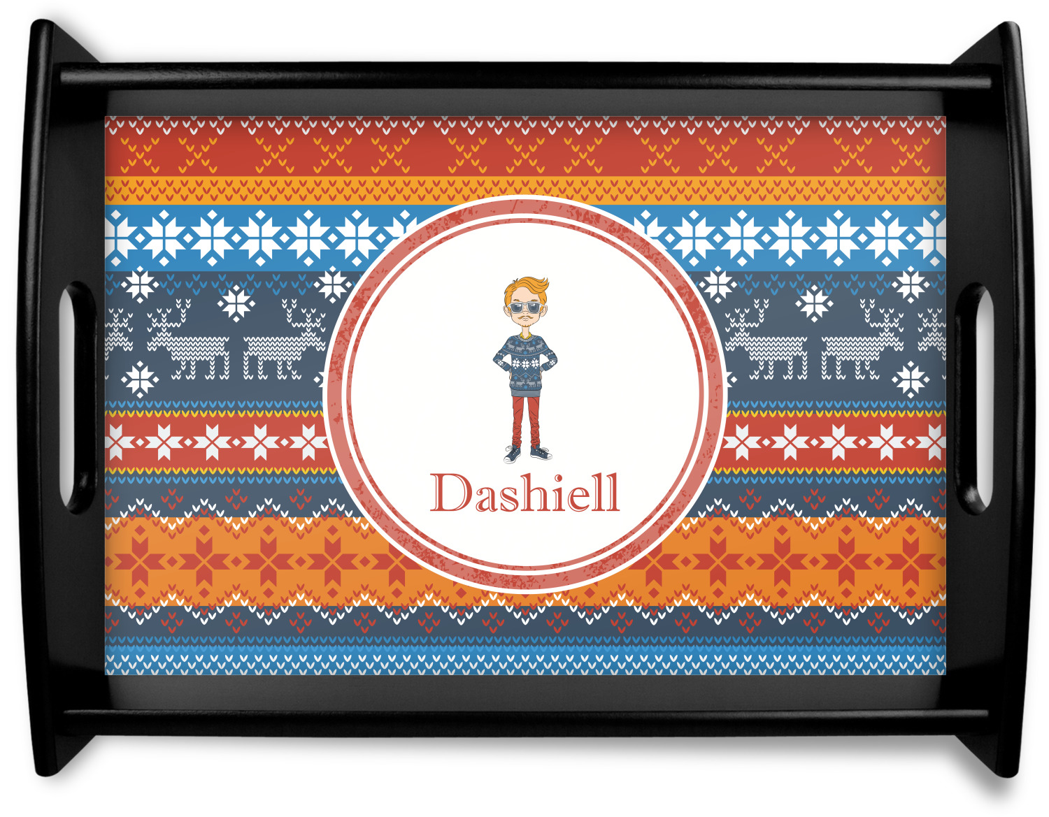 Hipster Winter Design on Custom Black Wooden Tray - Large