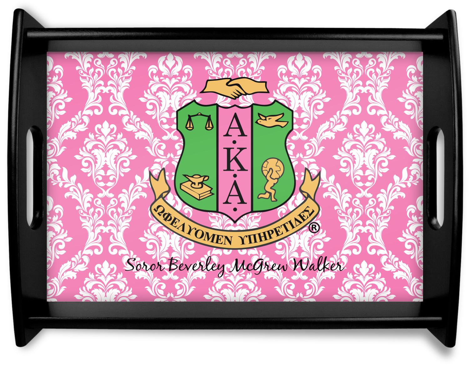 This serving tray with handles features square edges and two rounded sides, creating a very modern look. Each side is fabricated from a beautifully cut, natural wood. The bottom of the interior of the tray displays your customized design in bright, vibrant color. The tray is sold in both a black color and a natural wood look. Each variation of the wood serving tray has two sizes: Small, which is 14" x 10" x 2.25", and Large, which is 19.5" x 13.5" x 2.75".