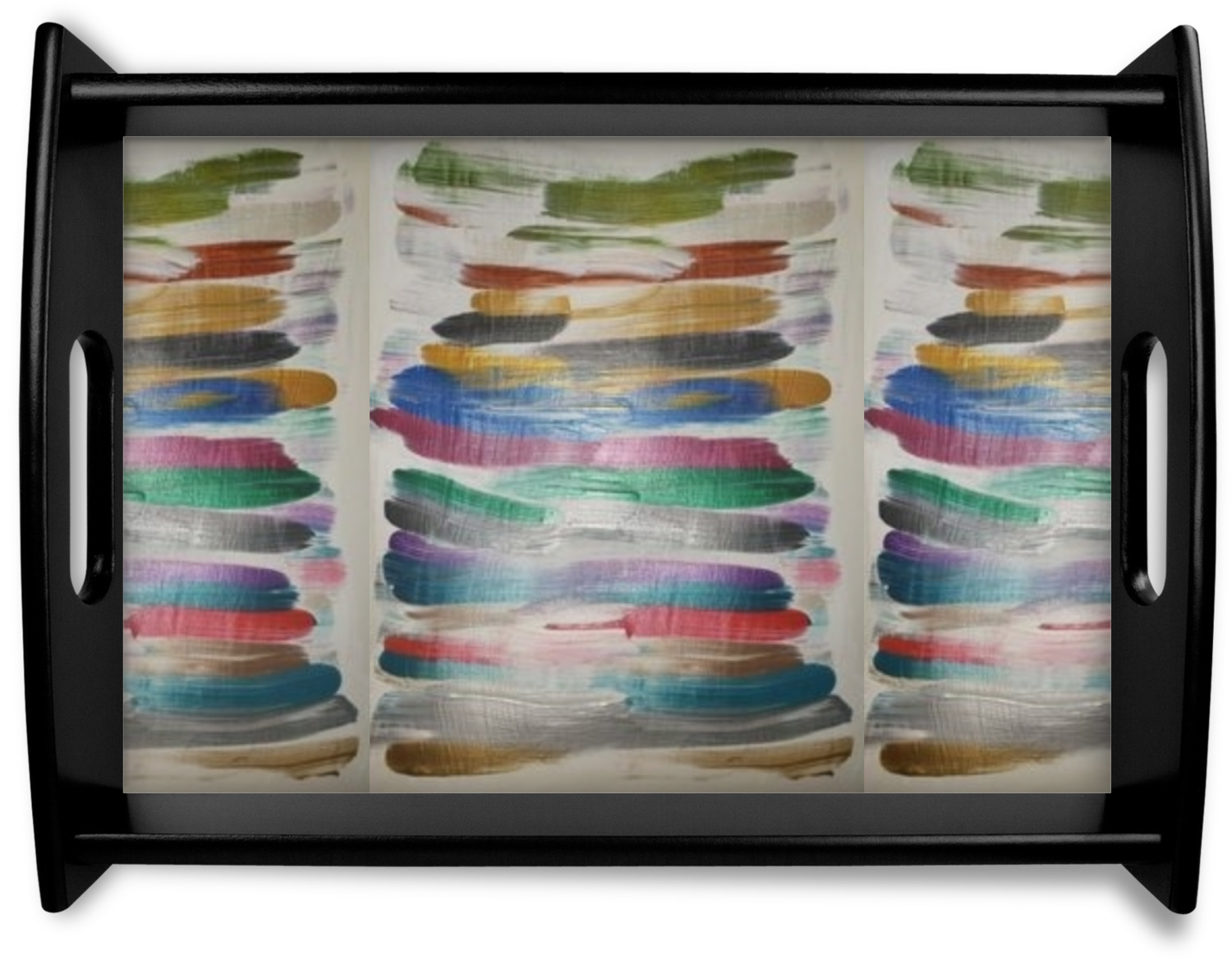 This serving tray with handles features square edges and two rounded sides, creating a very modern look. Each side is fabricated from a beautifully cut, natural wood. The bottom of the interior of the tray displays your customized design in bright, vibrant color. The tray is sold in both a black color and a natural wood look. Each variation of the wood serving tray has two sizes: Small, which is 14" x 10" x 2.25", and Large, which is 19.5" x 13.5" x 2.75".