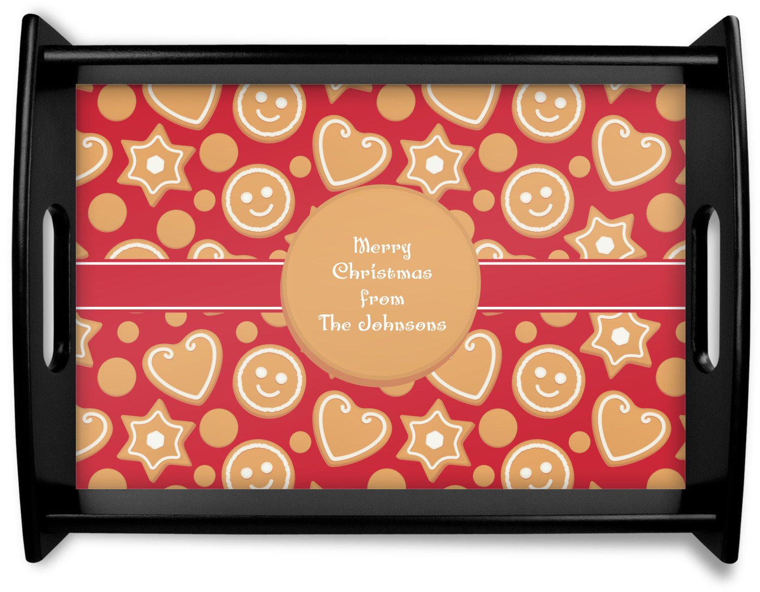 Gingerbread Cookies Design on Custom Black Wooden Tray - Large