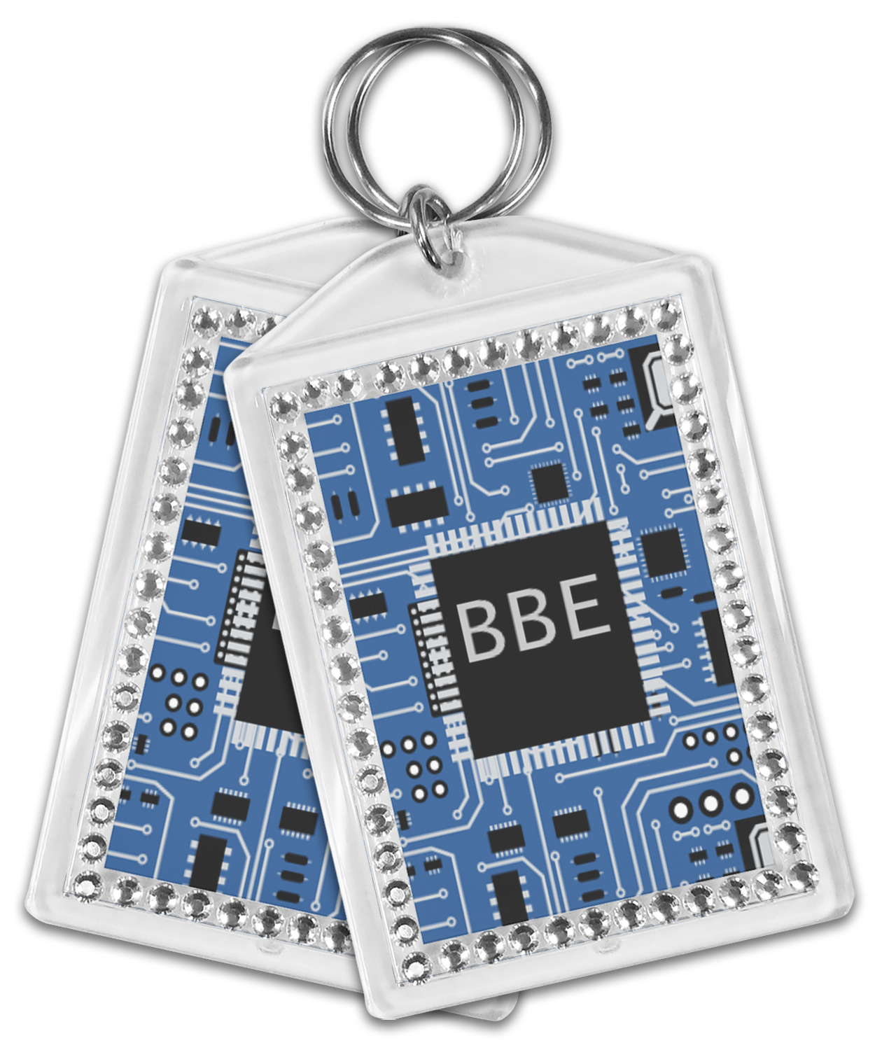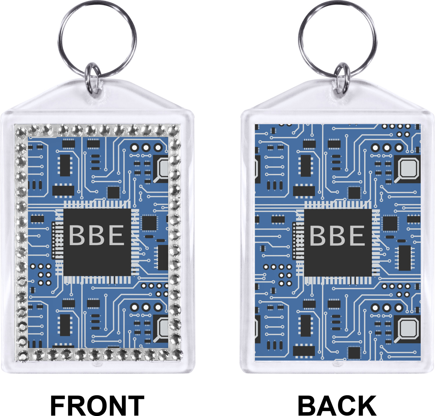 Our personalized keychains have a bold, rectangular shape, outlined by a series of shimmering rhinestones. A metal, split keyring is included with your purchase, and an additional metal hoop allows for attachment of the keychain to the split ring. This unique keychain measures at about 3.75 by 2.5 inches. We print your customized design(s) across both the back and front of this keychain.