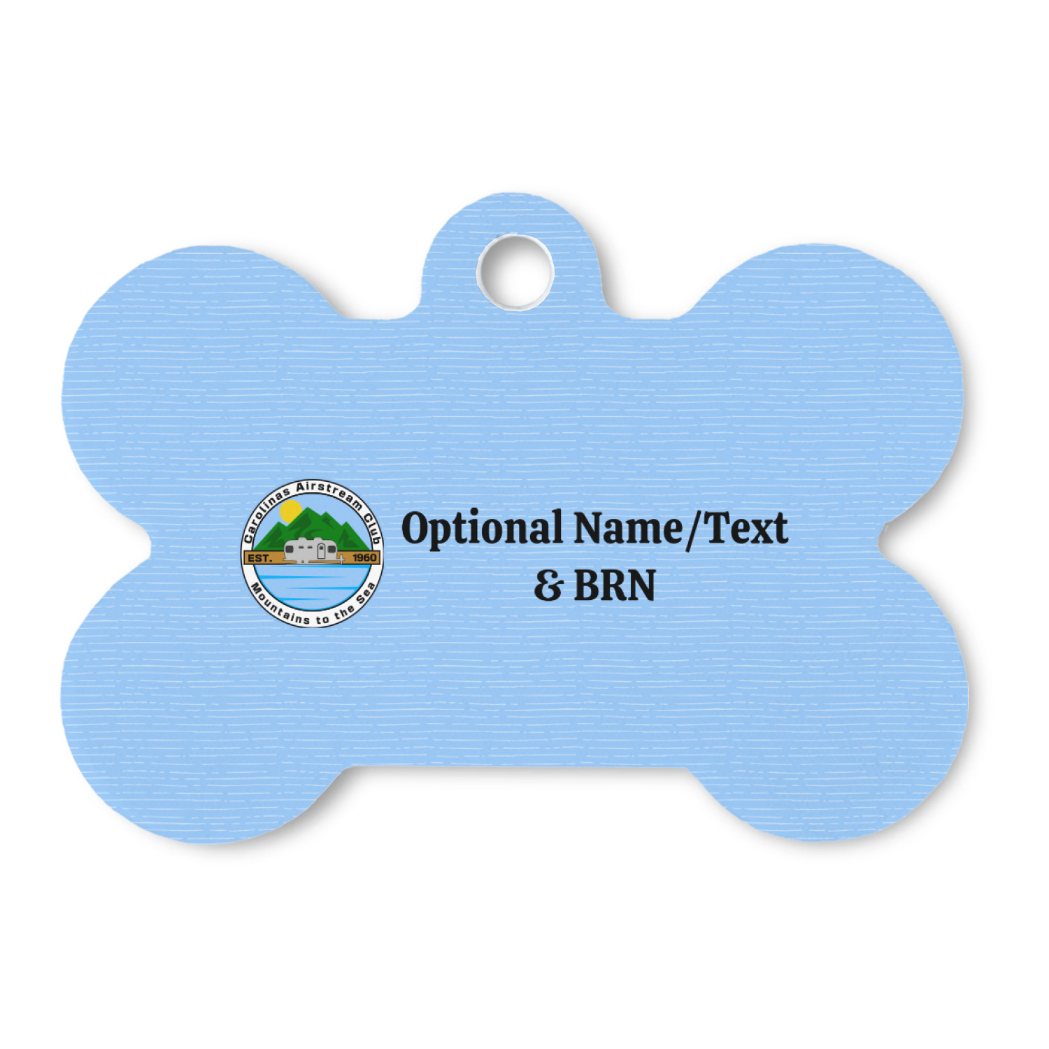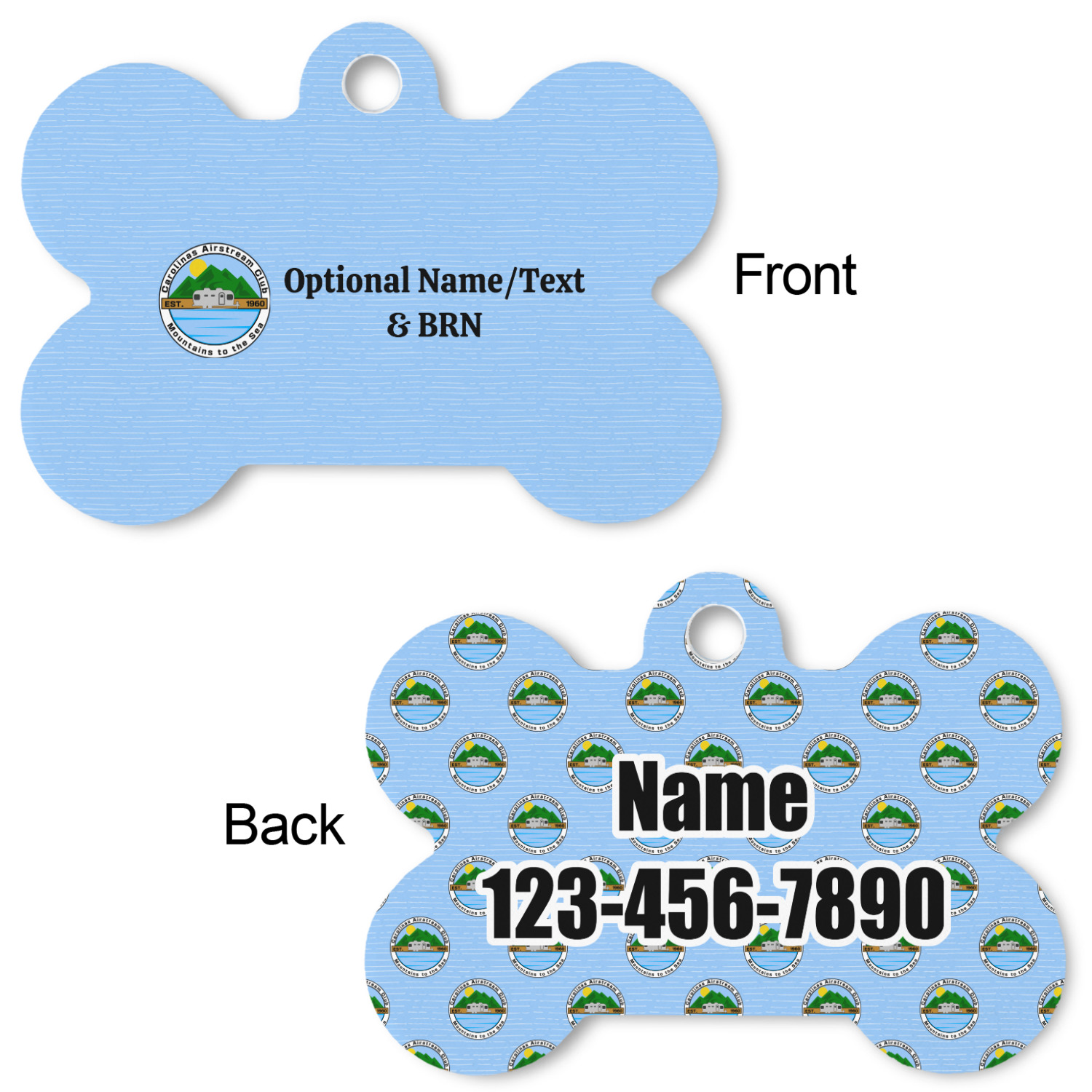 Shaped like a bone and made from aluminum, these tags are available in 2 different sizes.