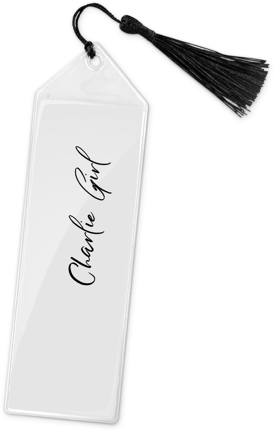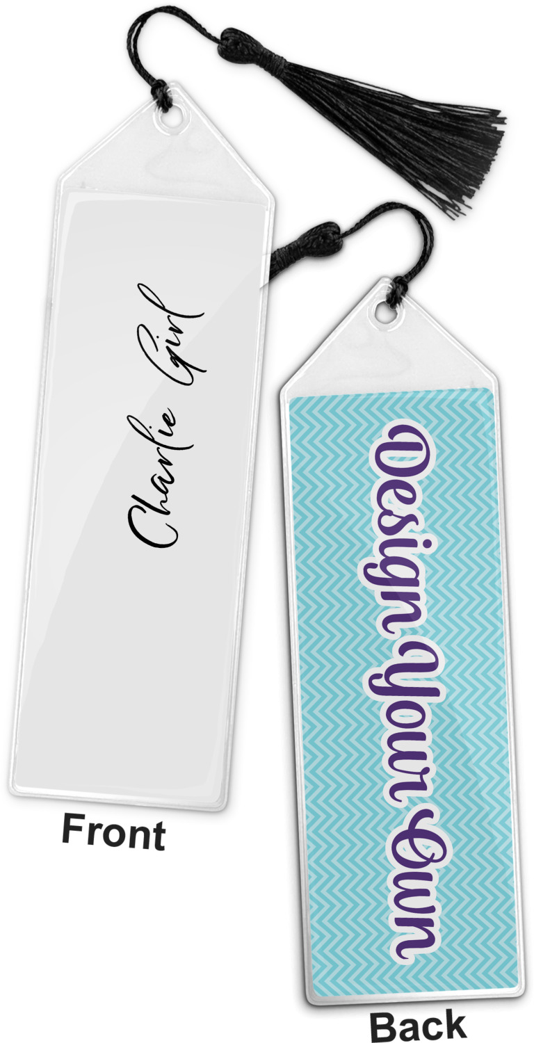 Your personalized bookmark is made of a sturdy, clear vinyl, and is approximately 7.5" x 2.25". We display your personalization on vinyl inserts that are placed on both sides. Accompanying each book marker is a black, fringe tassel that attaches to the reinforced, triangular header.