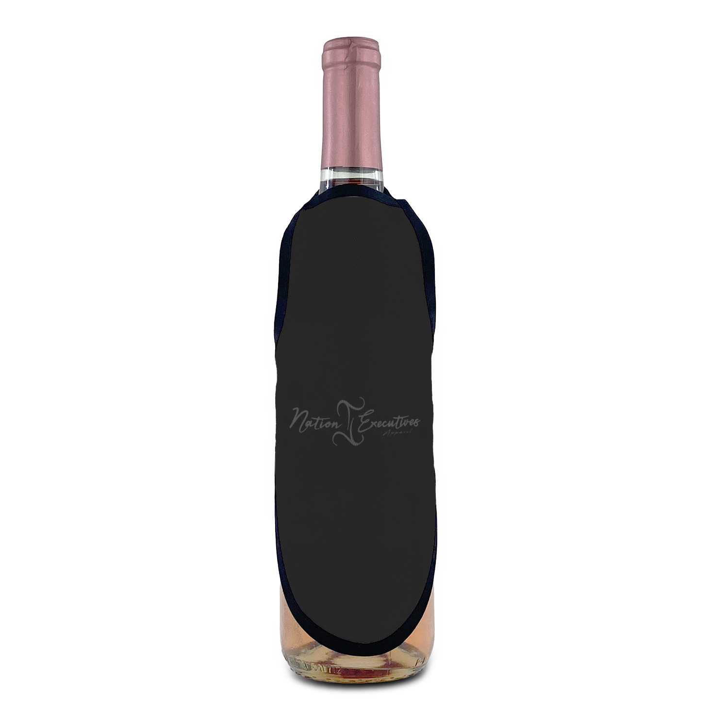 Made from a polyester fabric with black trim and tie string, these bottle aprons fit most large sized bottles including wine bottles, liquor bottles and dish soap bottles. With an included sliding cord lock the neck is adjustable to make these be a universal fit for most any sized bottle. The printed space of the apron measures approximately 8.5" tall and at its widest point the printed area is 6" wide.