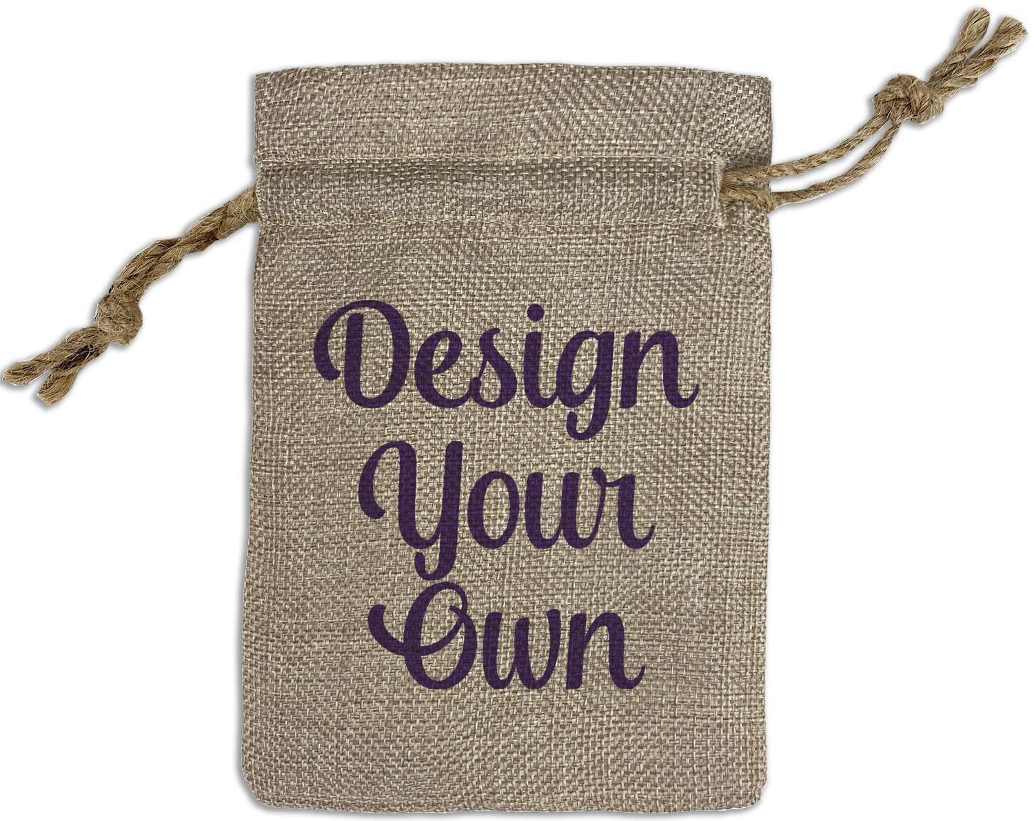 We sell our Burlap Gift Bags in 3 variant sized bags. Made with burlap polyester, each personalized bag can be secured with a twine drawstring pull. Your custom design is available to print on one side or both sides - completely up to you! The sizes of the bags measure approximately 4.5" x 6.5" for the smallest size, 6.5" x 8.0" for the medium size, and 6.5" x 13.5" for the large-sized bag.