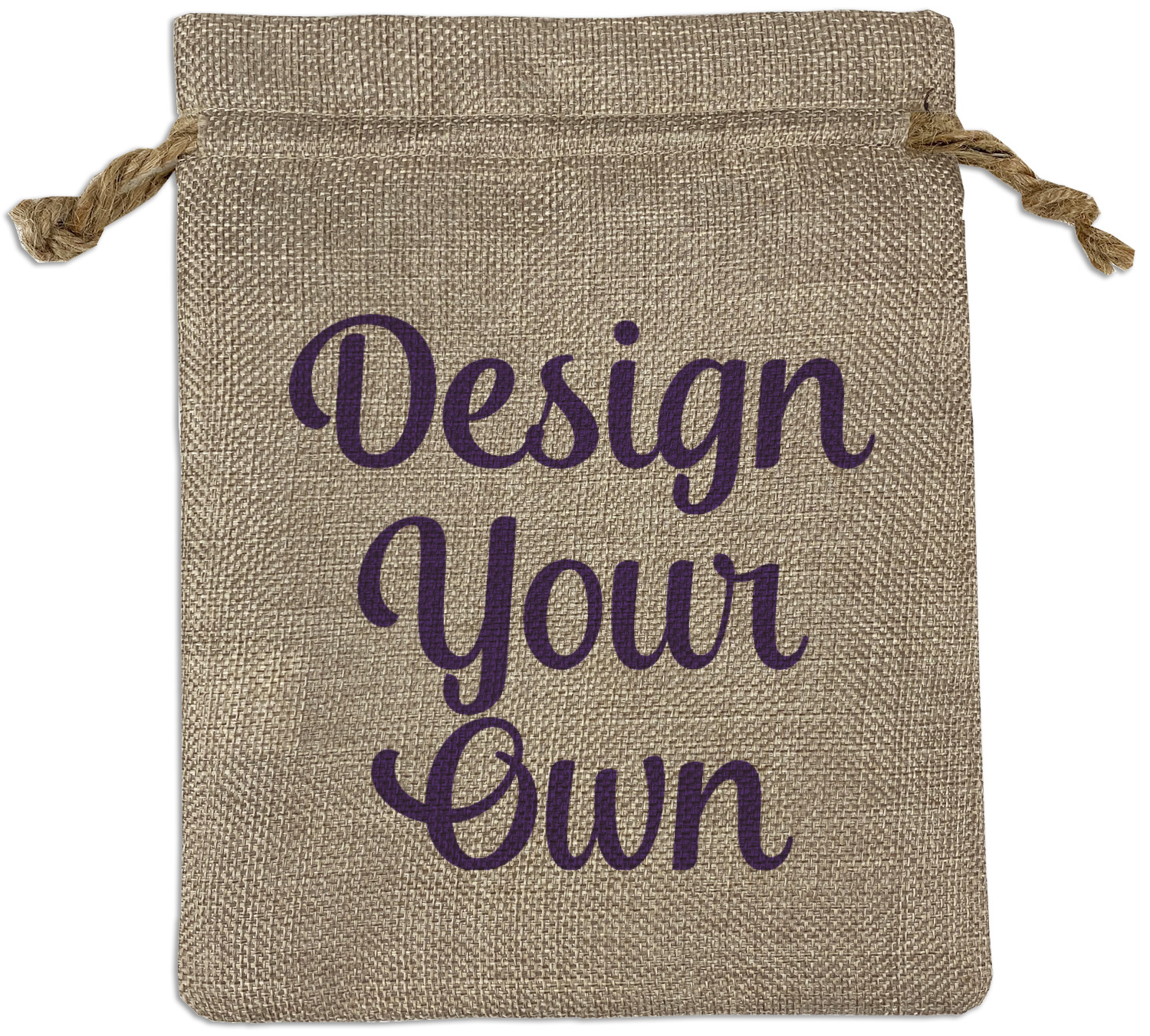 We sell our Burlap Gift Bags in 3 variant sized bags. Made with burlap polyester, each personalized bag can be secured with a twine drawstring pull. Your custom design is available to print on one side or both sides - completely up to you! The sizes of the bags measure approximately 4.5" x 6.5" for the smallest size, 6.5" x 8.0" for the medium size, and 6.5" x 13.5" for the large-sized bag.