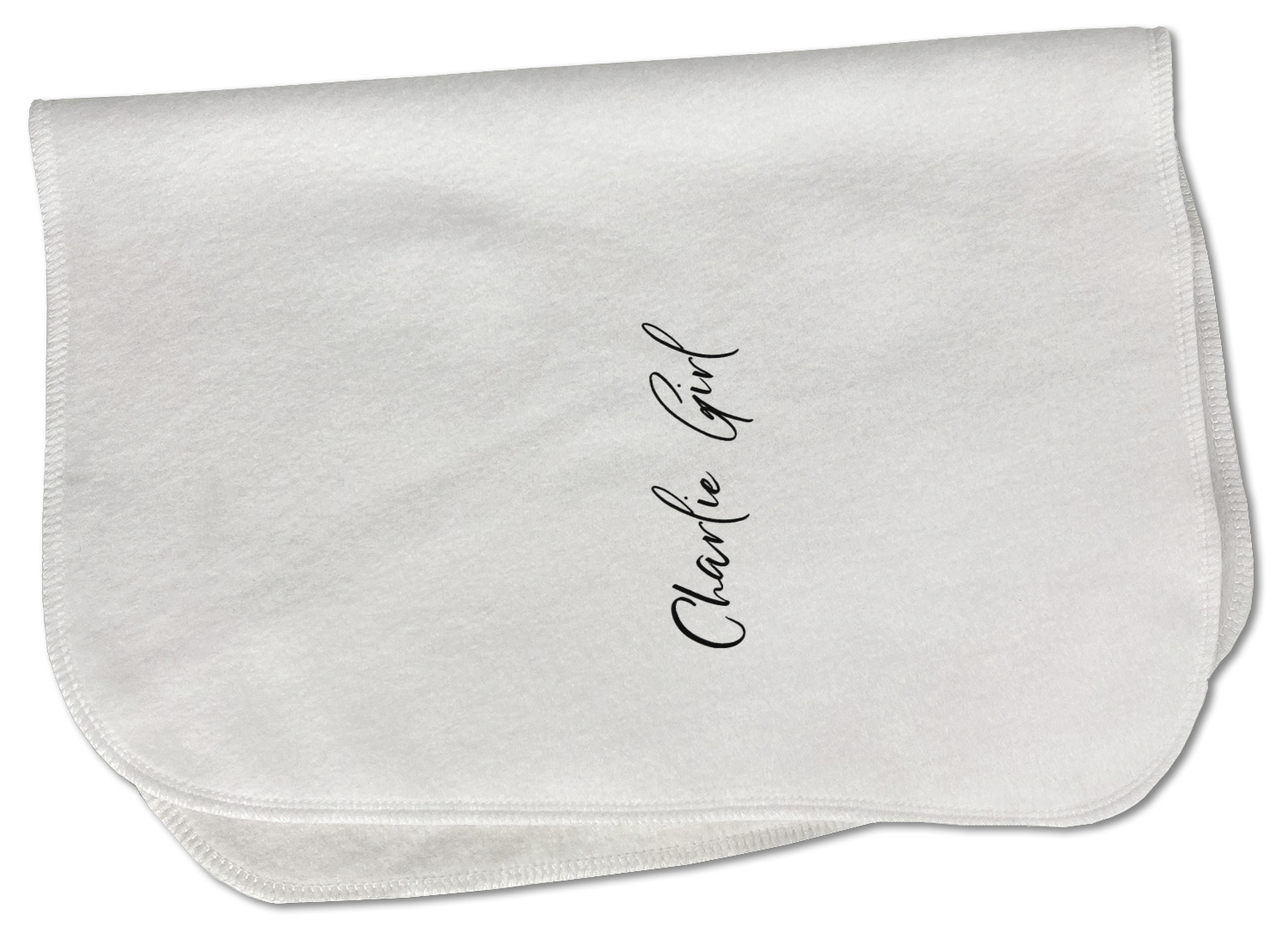 Choose your baby burp cloth from our two styles - Fleece (rectangular) or Microfiber Velour (peanut shape). The lightweight and absorbent design makes each burp cloth multipurpose; use them as a burp pad, a lap pad, a changing table, or a spare cloth to clean up any baby mess. Your customization is displayed across the front with baby-safe ink to ensure extra comfort with a white backing.