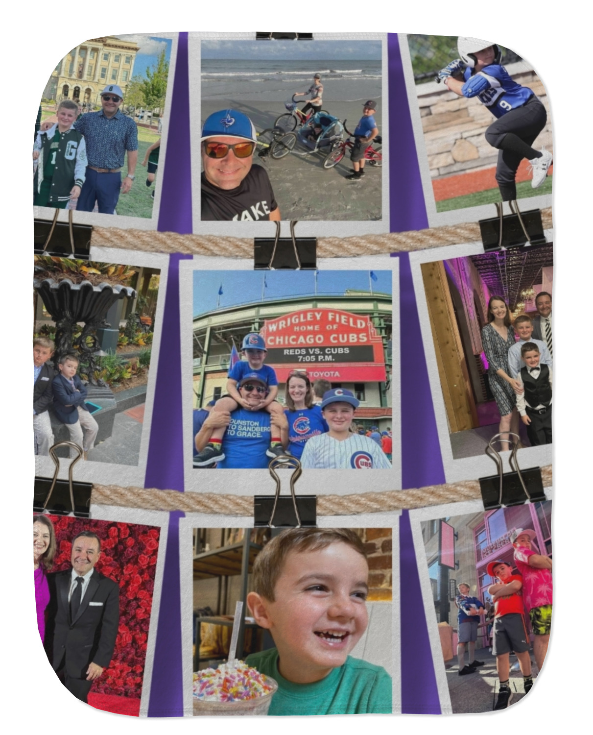 Choose your baby burp cloth from our two styles - Fleece (rectangular) or Microfiber Velour (peanut shape). The lightweight and absorbent design makes each burp cloth multipurpose; use them as a burp pad, a lap pad, a changing table, or a spare cloth to clean up any baby mess. Your customization is displayed across the front with baby-safe ink to ensure extra comfort with a white backing.