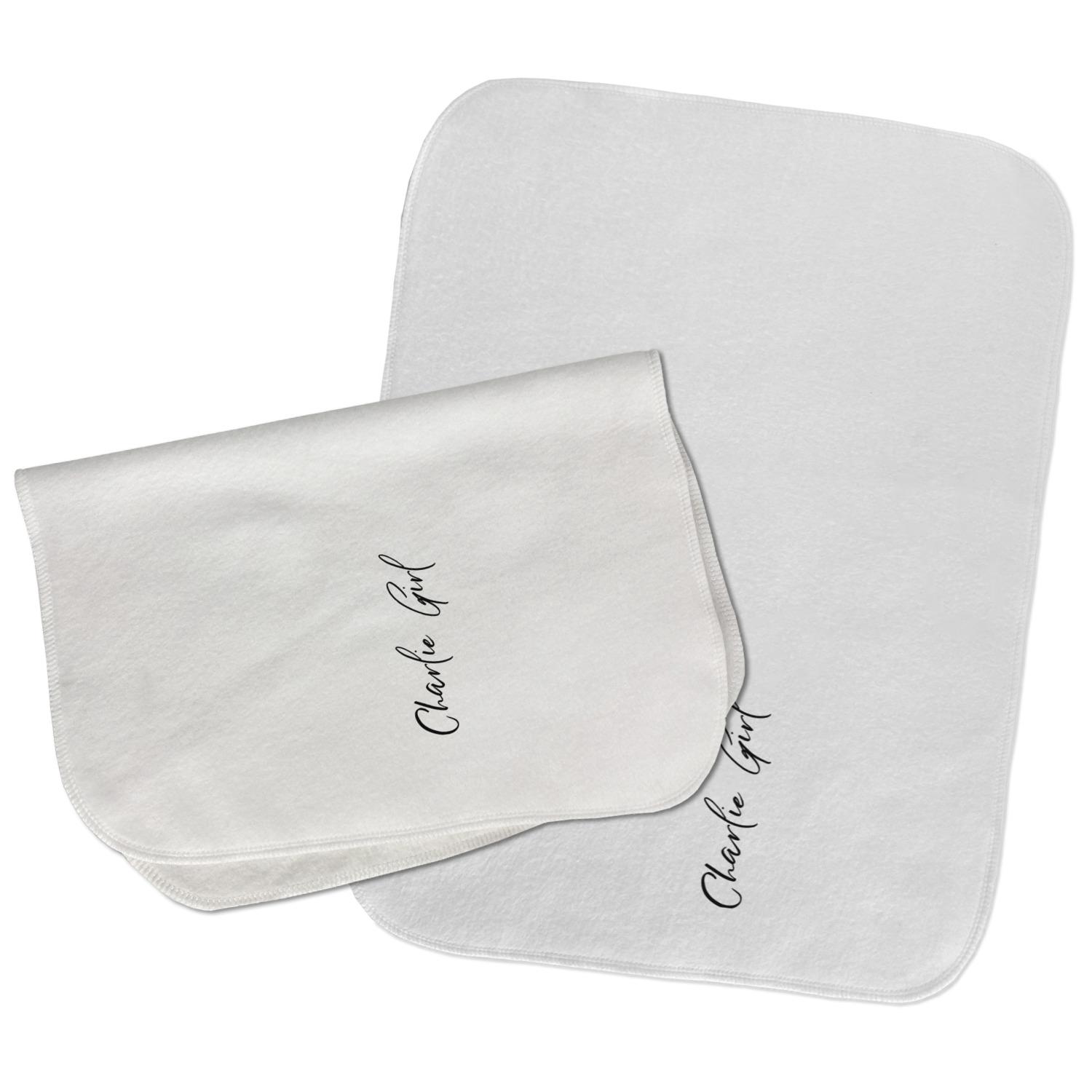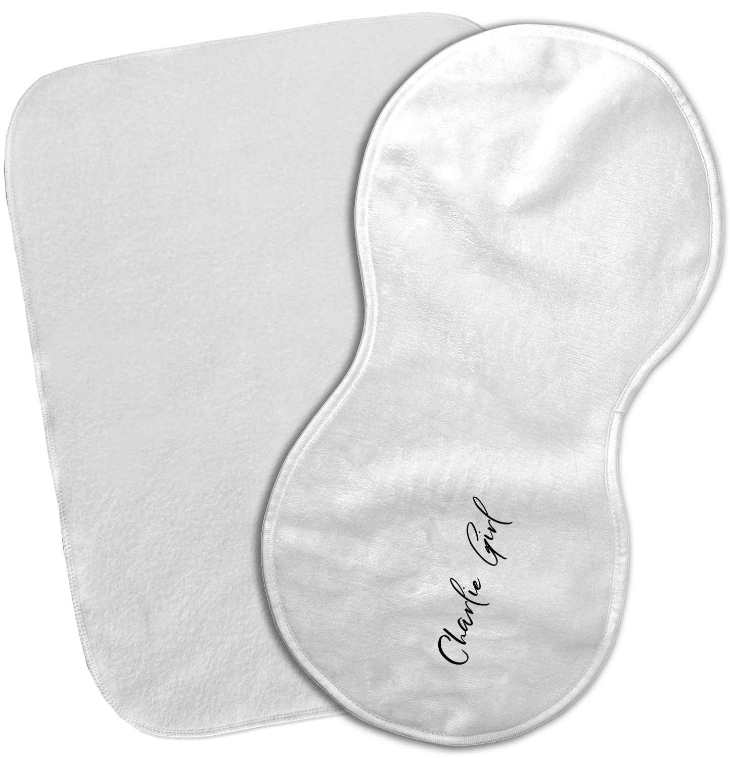 Choose your baby burp cloth from our two styles - Fleece (rectangular) or Microfiber Velour (peanut shape). The lightweight and absorbent design makes each burp cloth multipurpose; use them as a burp pad, a lap pad, a changing table, or a spare cloth to clean up any baby mess. Your customization is displayed across the front with baby-safe ink to ensure extra comfort with a white backing.