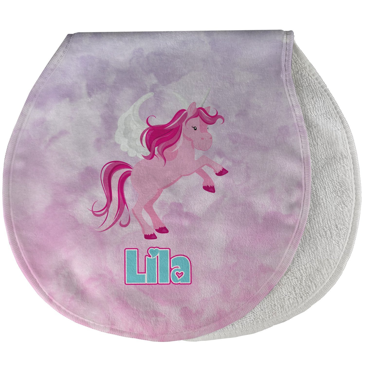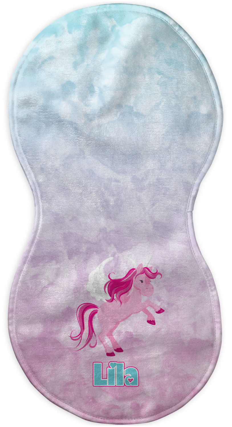 Choose your baby burp cloth from our two styles - Fleece (rectangular) or Microfiber Velour (peanut shape). The lightweight and absorbent design makes each burp cloth multipurpose; use them as a burp pad, a lap pad, a changing table, or a spare cloth to clean up any baby mess. Your customization is displayed across the front with baby-safe ink to ensure extra comfort with a white backing.
