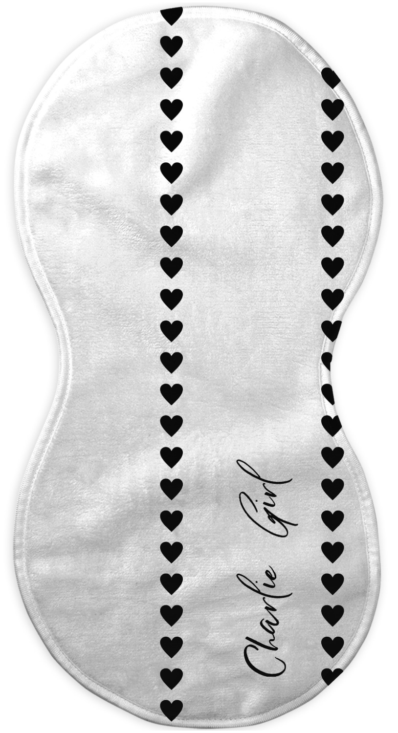 Choose your baby burp cloth from our two styles - Fleece (rectangular) or Microfiber Velour (peanut shape). The lightweight and absorbent design makes each burp cloth multipurpose; use them as a burp pad, a lap pad, a changing table, or a spare cloth to clean up any baby mess. Your customization is displayed across the front with baby-safe ink to ensure extra comfort with a white backing.