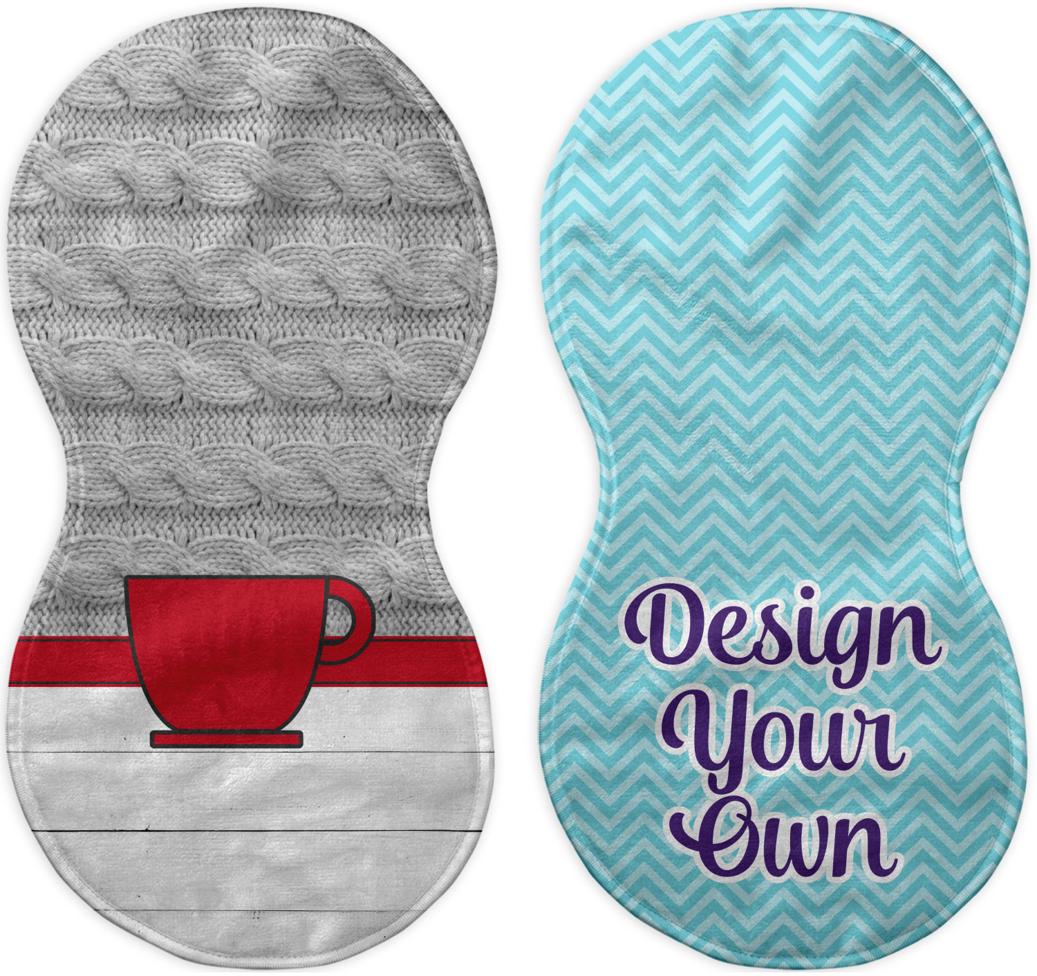 Choose your baby burp cloth from our two styles - Fleece (rectangular) or Microfiber Velour (peanut shape). The lightweight and absorbent design makes each burp cloth multipurpose; use them as a burp pad, a lap pad, a changing table, or a spare cloth to clean up any baby mess. Your customization is displayed across the front with baby-safe ink to ensure extra comfort with a white backing.