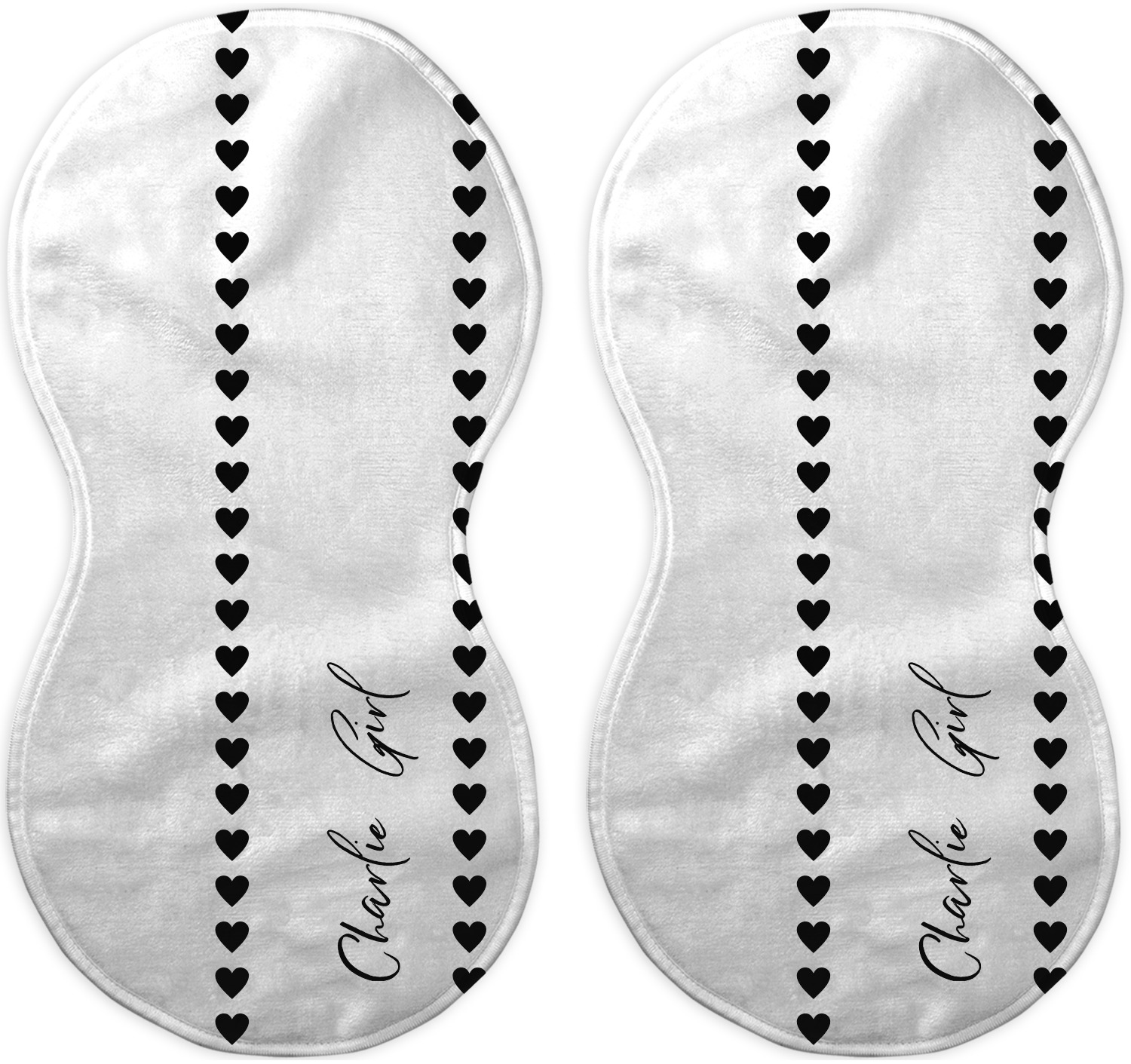 Choose your baby burp cloth from our two styles - Fleece (rectangular) or Microfiber Velour (peanut shape). The lightweight and absorbent design makes each burp cloth multipurpose; use them as a burp pad, a lap pad, a changing table, or a spare cloth to clean up any baby mess. Your customization is displayed across the front with baby-safe ink to ensure extra comfort with a white backing.