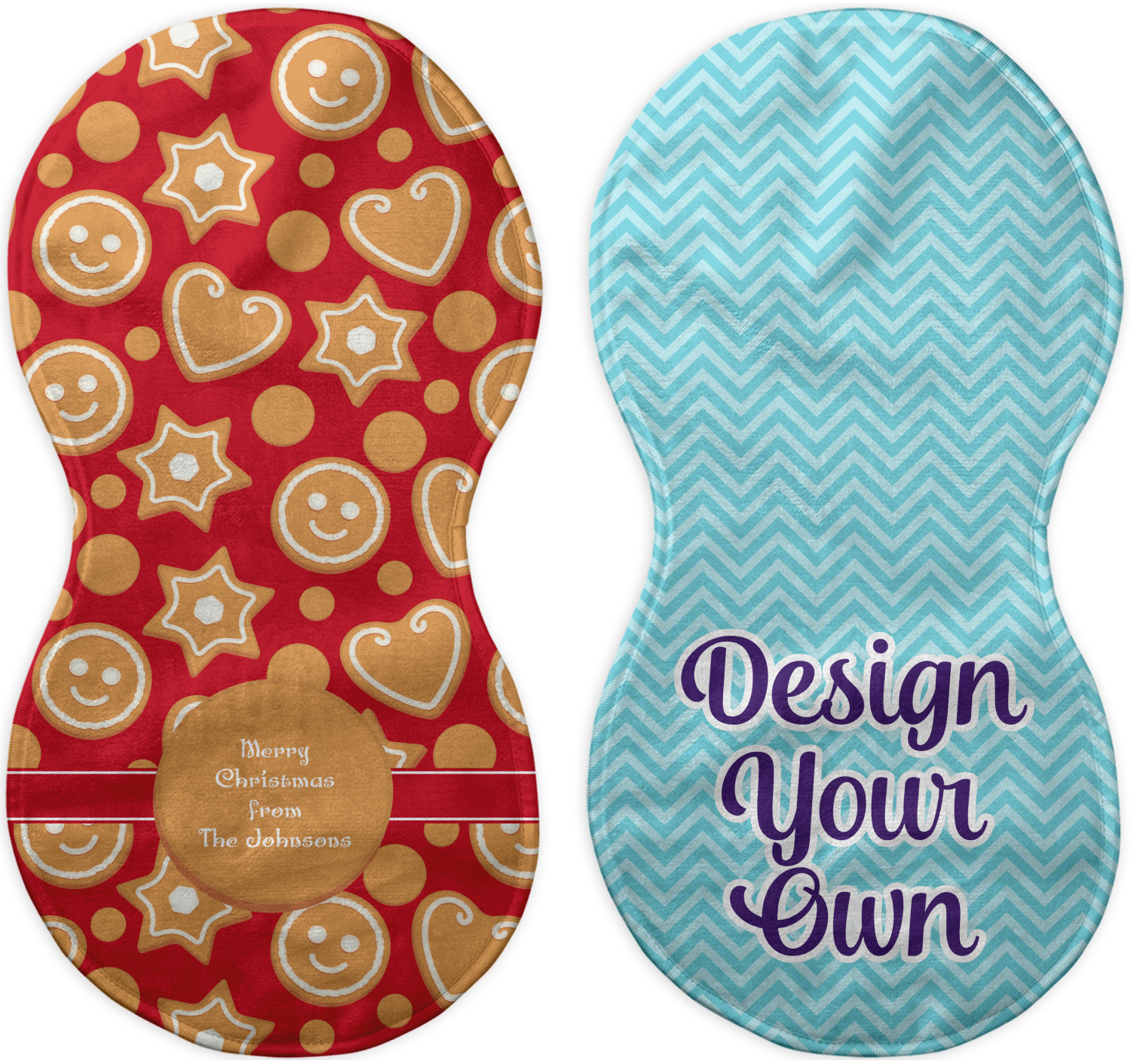 Choose your baby burp cloth from our two styles - Fleece (rectangular) or Microfiber Velour (peanut shape). The lightweight and absorbent design makes each burp cloth multipurpose; use them as a burp pad, a lap pad, a changing table, or a spare cloth to clean up any baby mess. Your customization is displayed across the front with baby-safe ink to ensure extra comfort with a white backing.