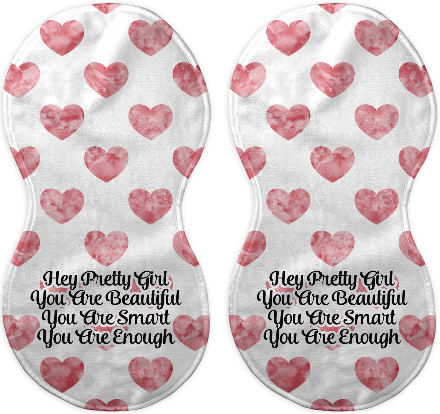 Choose your baby burp cloth from our two styles - Fleece (rectangular) or Microfiber Velour (peanut shape). The lightweight and absorbent design makes each burp cloth multipurpose; use them as a burp pad, a lap pad, a changing table, or a spare cloth to clean up any baby mess. Your customization is displayed across the front with baby-safe ink to ensure extra comfort with a white backing.