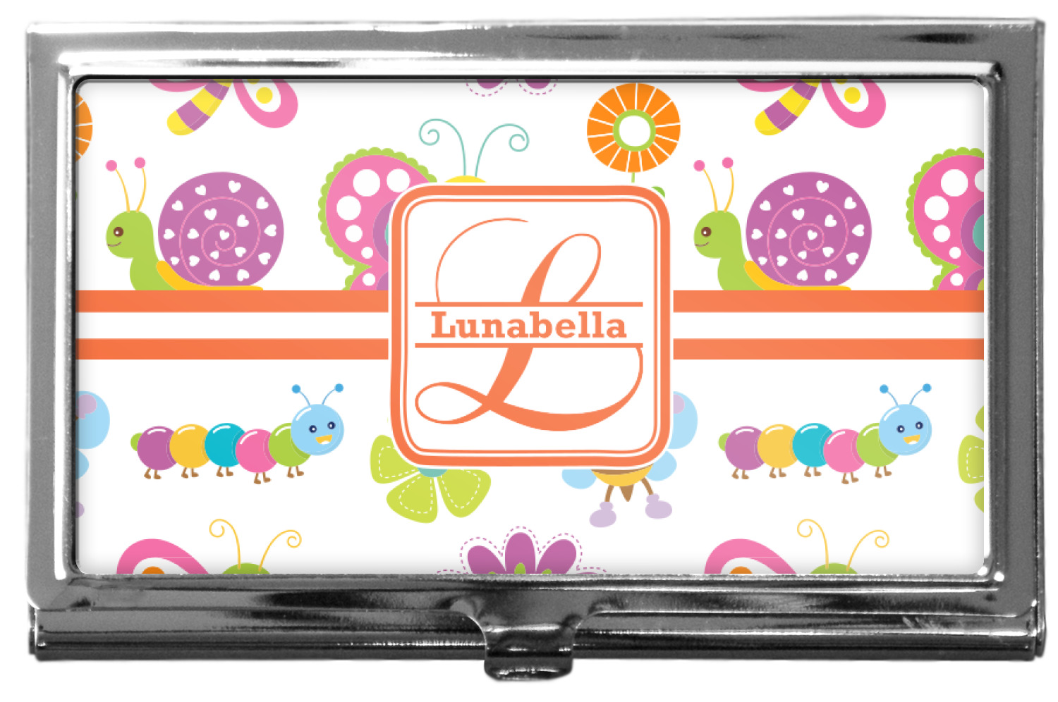 Our personalized business card holders are built from a robust, stainless steel and shaped into a sleek rectangle. At 3.75" x 2.5", and 0.25" thick, this nifty accessory holds up to 12 to 15 business cards, depending on the thickness of the cards themselves. Regardless, the skinny style makes it the perfect fit for your purse or pocket. The lid of your custom business card holder features a protruding tab to open and close your holder with a snap. To protect the mint condition of your cards, the interior of this metal business card holder is lined with a soft, felt fabric. We print your personalized design across the face of the lid.