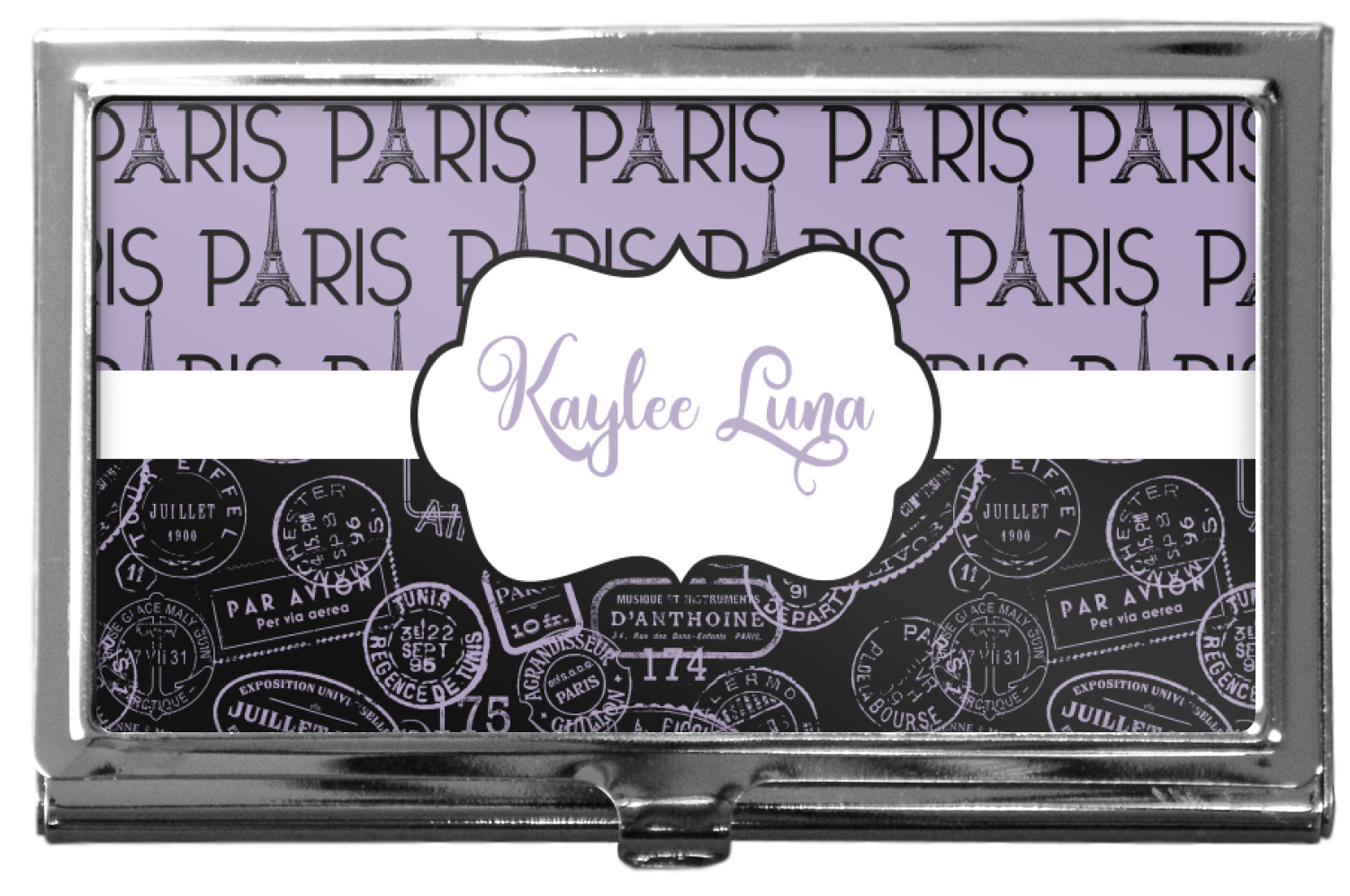 Our personalized business card holders are built from a robust, stainless steel and shaped into a sleek rectangle. At 3.75" x 2.5", and 0.25" thick, this nifty accessory holds up to 12 to 15 business cards, depending on the thickness of the cards themselves. Regardless, the skinny style makes it the perfect fit for your purse or pocket. The lid of your custom business card holder features a protruding tab to open and close your holder with a snap. To protect the mint condition of your cards, the interior of this metal business card holder is lined with a soft, felt fabric. We print your personalized design across the face of the lid.