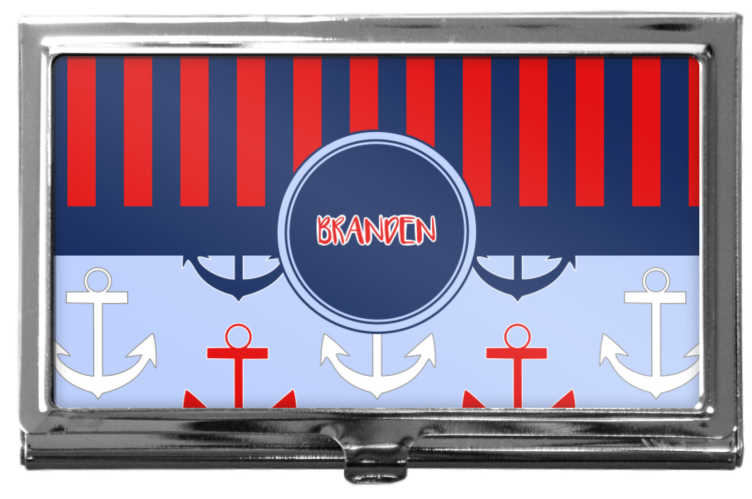 Our personalized business card holders are built from a robust, stainless steel and shaped into a sleek rectangle. At 3.75" x 2.5", and 0.25" thick, this nifty accessory holds up to 12 to 15 business cards, depending on the thickness of the cards themselves. Regardless, the skinny style makes it the perfect fit for your purse or pocket. The lid of your custom business card holder features a protruding tab to open and close your holder with a snap. To protect the mint condition of your cards, the interior of this metal business card holder is lined with a soft, felt fabric. We print your personalized design across the face of the lid.