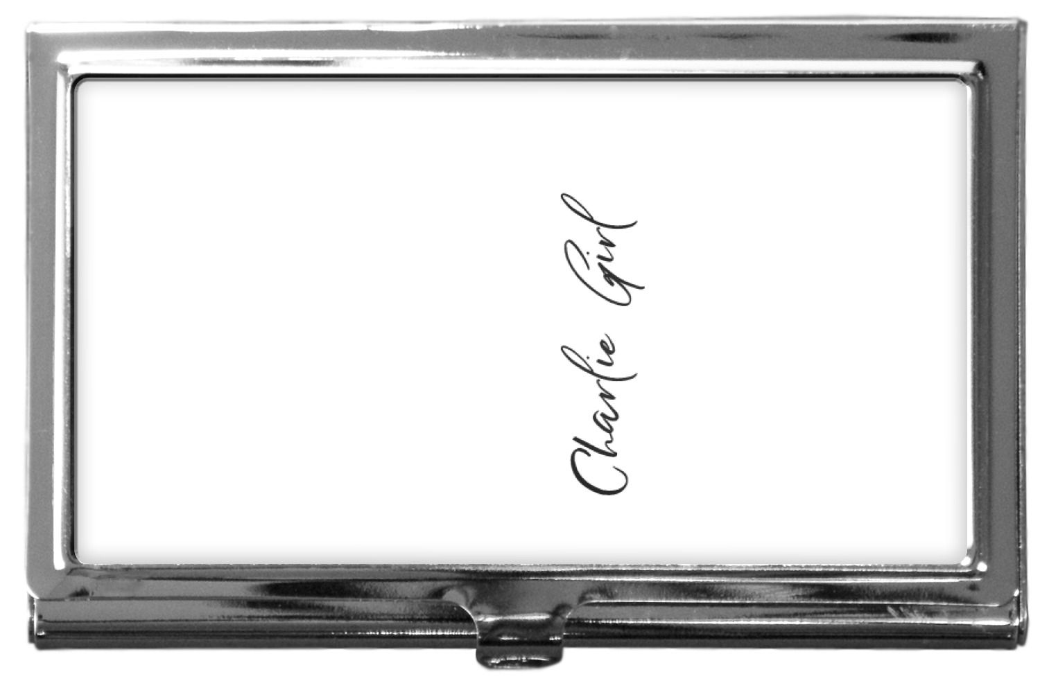 Our personalized business card holders are built from a robust, stainless steel and shaped into a sleek rectangle. At 3.75" x 2.5", and 0.25" thick, this nifty accessory holds up to 12 to 15 business cards, depending on the thickness of the cards themselves. Regardless, the skinny style makes it the perfect fit for your purse or pocket. The lid of your custom business card holder features a protruding tab to open and close your holder with a snap. To protect the mint condition of your cards, the interior of this metal business card holder is lined with a soft, felt fabric. We print your personalized design across the face of the lid.