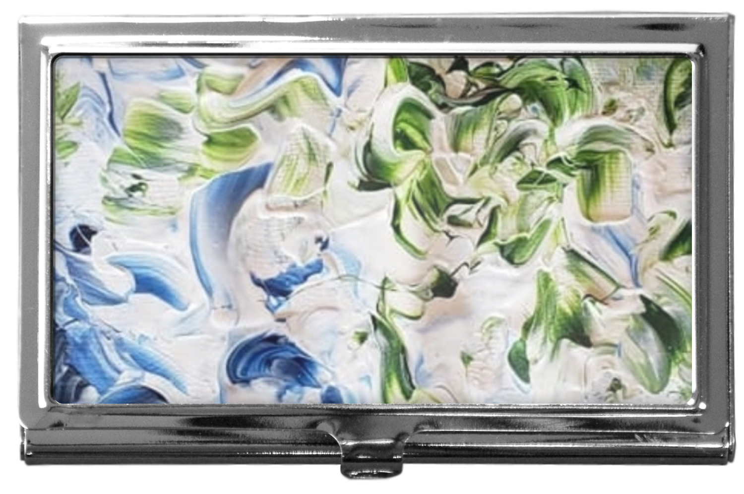Our personalized business card holders are built from a robust, stainless steel and shaped into a sleek rectangle. At 3.75" x 2.5", and 0.25" thick, this nifty accessory holds up to 12 to 15 business cards, depending on the thickness of the cards themselves. Regardless, the skinny style makes it the perfect fit for your purse or pocket. The lid of your custom business card holder features a protruding tab to open and close your holder with a snap. To protect the mint condition of your cards, the interior of this metal business card holder is lined with a soft, felt fabric. We print your personalized design across the face of the lid.