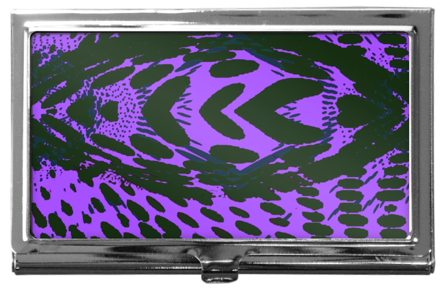 Our personalized business card holders are built from a robust, stainless steel and shaped into a sleek rectangle. At 3.75" x 2.5", and 0.25" thick, this nifty accessory holds up to 12 to 15 business cards, depending on the thickness of the cards themselves. Regardless, the skinny style makes it the perfect fit for your purse or pocket. The lid of your custom business card holder features a protruding tab to open and close your holder with a snap. To protect the mint condition of your cards, the interior of this metal business card holder is lined with a soft, felt fabric. We print your personalized design across the face of the lid.