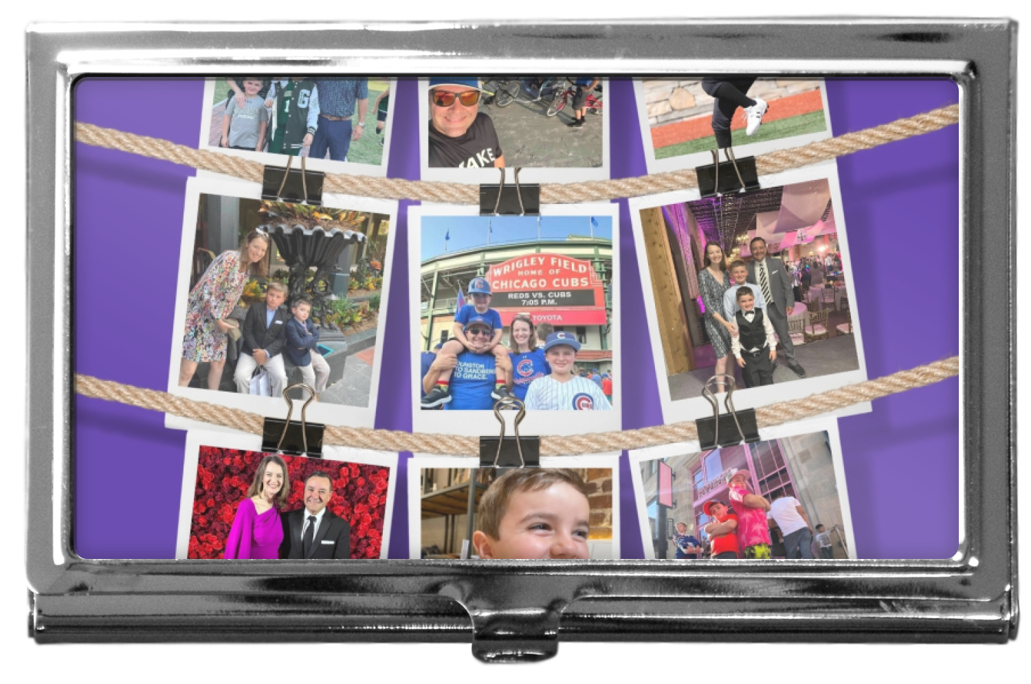 Our personalized business card holders are built from a robust, stainless steel and shaped into a sleek rectangle. At 3.75" x 2.5", and 0.25" thick, this nifty accessory holds up to 12 to 15 business cards, depending on the thickness of the cards themselves. Regardless, the skinny style makes it the perfect fit for your purse or pocket. The lid of your custom business card holder features a protruding tab to open and close your holder with a snap. To protect the mint condition of your cards, the interior of this metal business card holder is lined with a soft, felt fabric. We print your personalized design across the face of the lid.