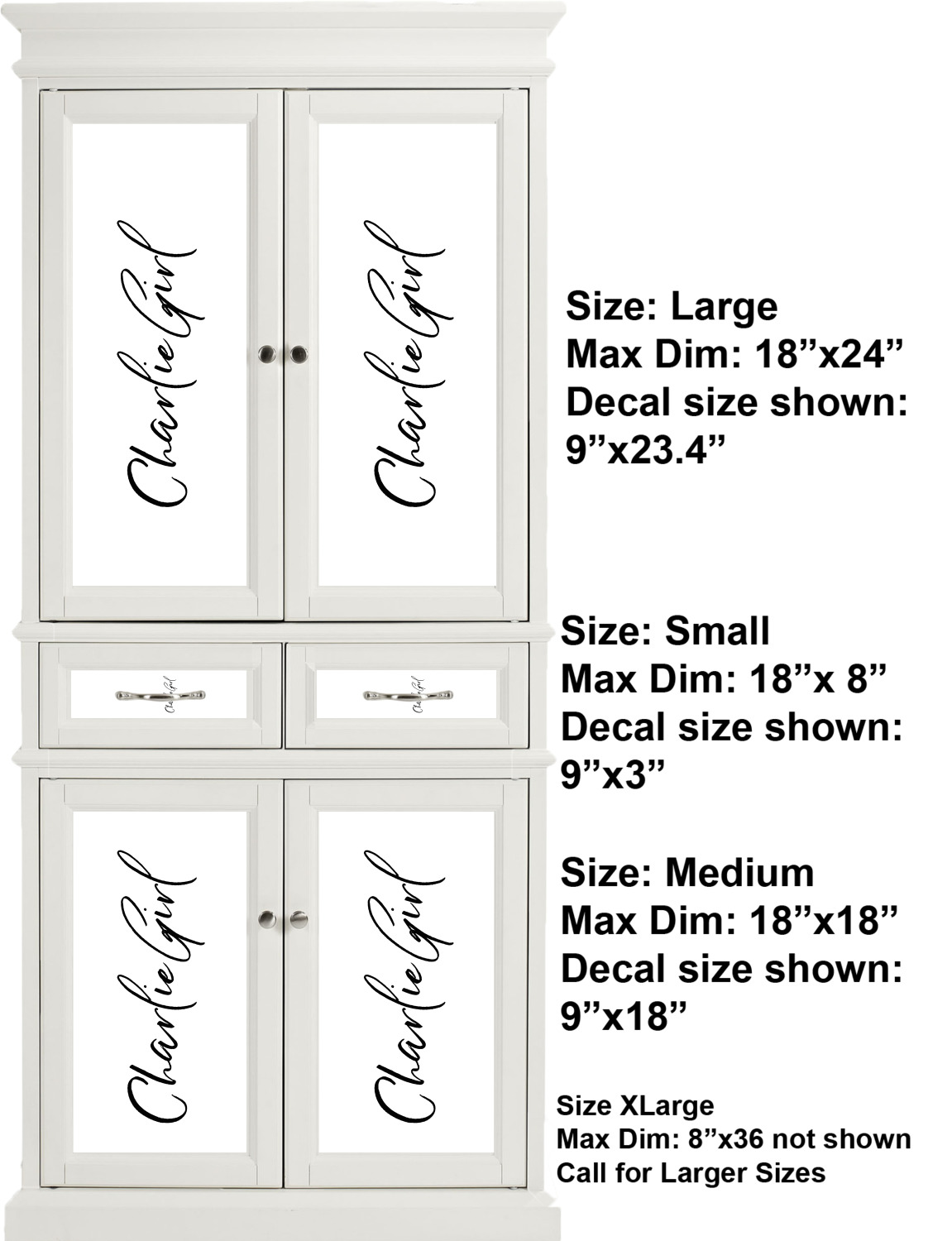 We print your customized design in full color, onto a high quality vinyl, covered with a glossy finish. For attachment to the cabinet, each cabinet sticker is accompanied by an easily applied, adhesive backing. The adhesive backing also guarantees a smooth removal or repositioning if desired. We sell these decals in four different sizes, but each size can be downsized appropriately to fit the needs of your kitchen. We offer a small, which is 18 by 8 inches, a medium, which is 18 by 18 inches, a large, at 24 by 18 inches, and an extra large, at 36 by 18 inches. We advise that you measure your cabinets first so you can make a properly informed purchase. For those who are interested in purchasing decals larger than 18 by 36 inches, please contact our team.