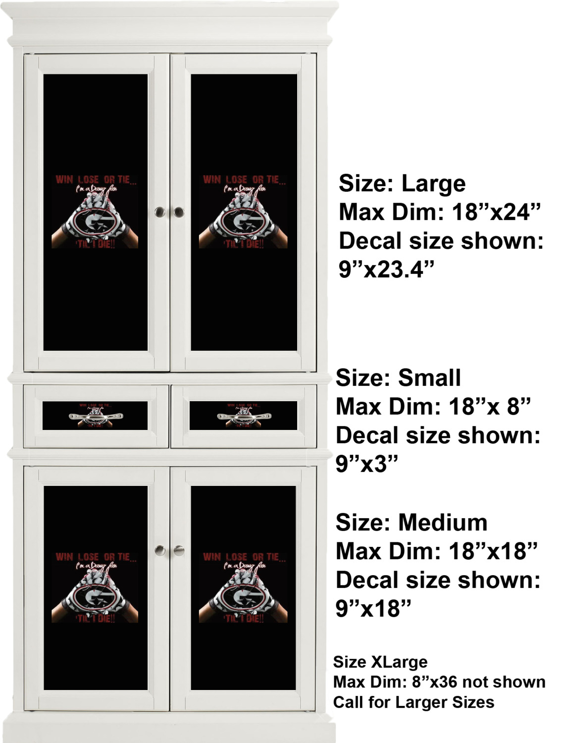 | Product Dimensions (Varies By Option) | Small (Max. 18" x 8") Medium (Max. 18" x 18") Large (Max. 24" x 18") Extra Large (Max. 36" x 18") |