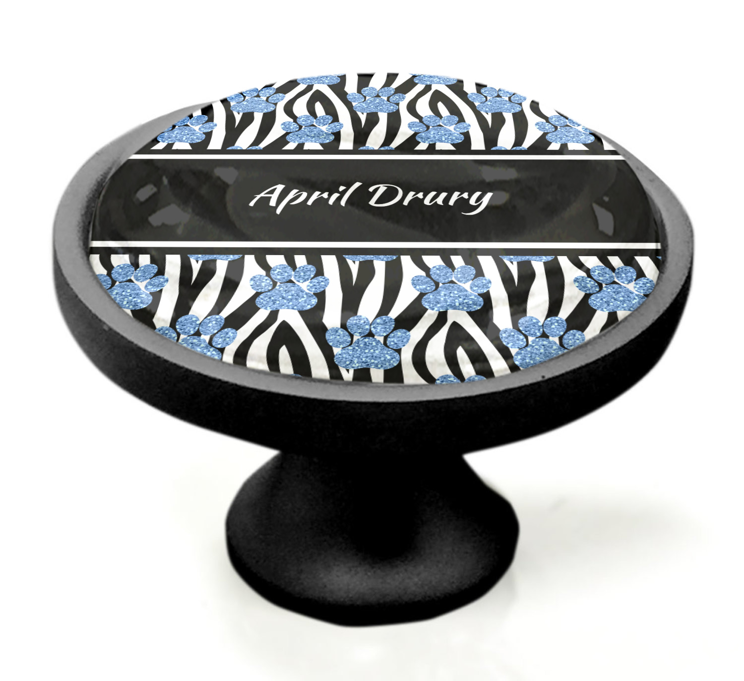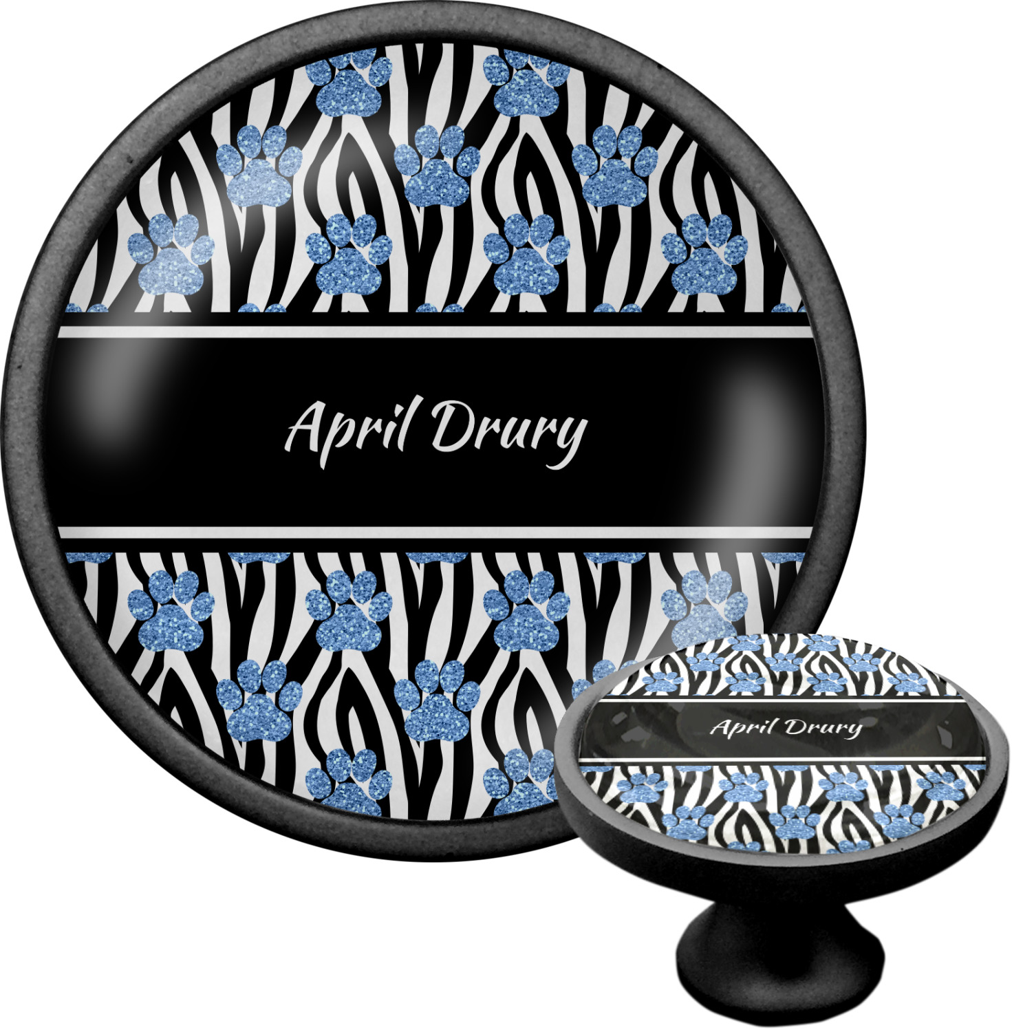 We sell these cabinet pulls in two different colors to better match your room's color scheme. We offer an oil-rubbed bronze base that is black in color, and a satin nickel option, which has a silver color. Your design is displayed across a high gloss vinyl insert that is placed on top of these cabinet handles. We then place a 1 inch thick glass cabochon atop the design, which seals the cabinet knob and makes the colors of your customization stand out. These custom cabinet knobs are approximately 1.3 inches in diameter. Your purchase includes a 1 inch screw that can be used to mount the knob to any cabinet in your home.