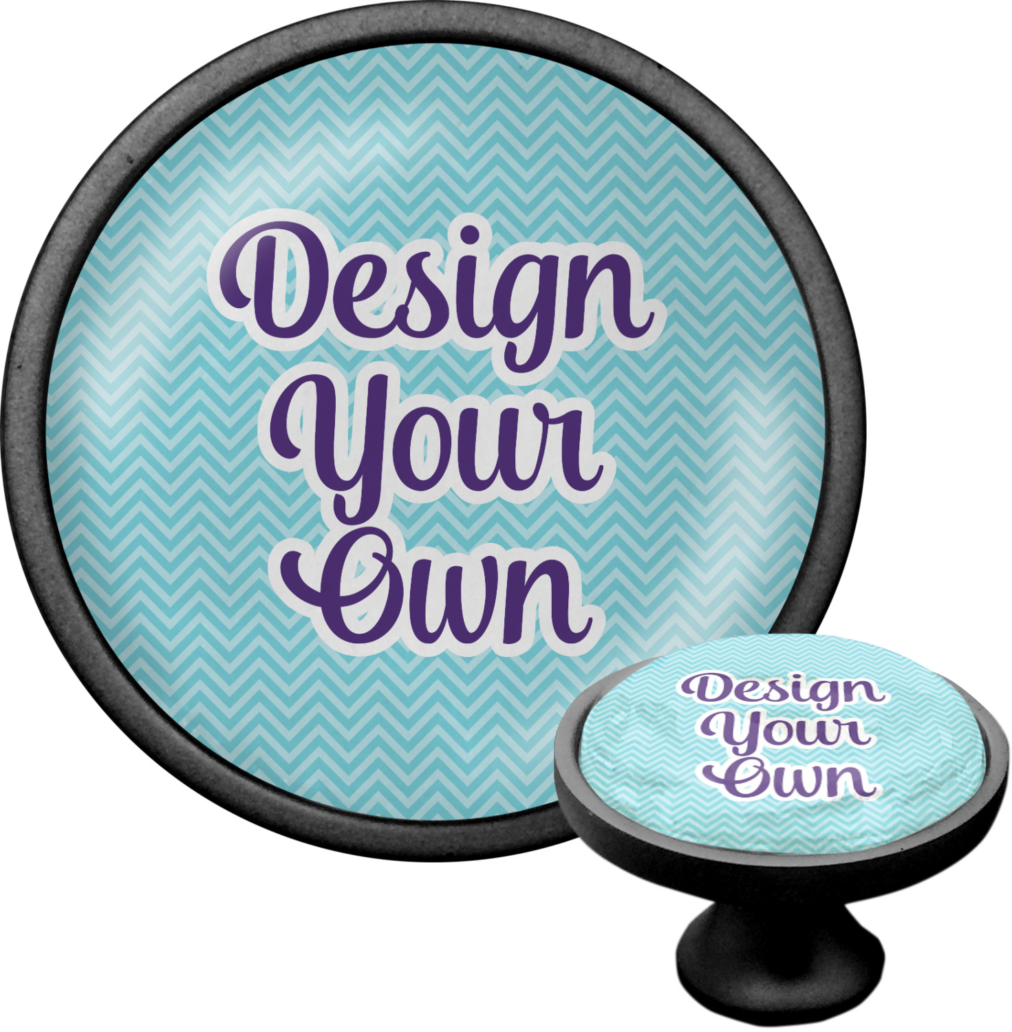 We sell these cabinet pulls in two different colors to better match your room's color scheme. We offer an oil-rubbed bronze base that is black in color, and a satin nickel option, which has a silver color. Your design is displayed across a high gloss vinyl insert that is placed on top of these cabinet handles. We then place a 1 inch thick glass cabochon atop the design, which seals the cabinet knob and makes the colors of your customization stand out. These custom cabinet knobs are approximately 1.3 inches in diameter. Your purchase includes a 1 inch screw that can be used to mount the knob to any cabinet in your home.
