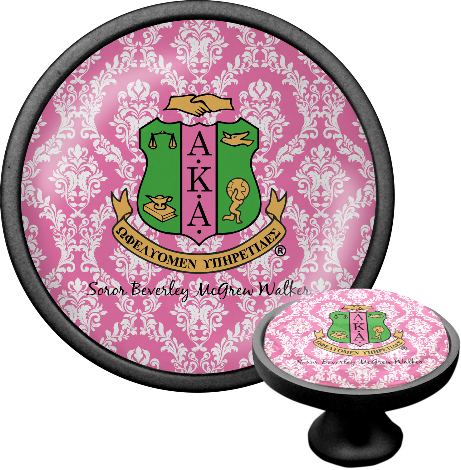 We sell these cabinet pulls in two different colors to better match your room's color scheme. We offer an oil-rubbed bronze base that is black in color, and a satin nickel option, which has a silver color. Your design is displayed across a high gloss vinyl insert that is placed on top of these cabinet handles. We then place a 1 inch thick glass cabochon atop the design, which seals the cabinet knob and makes the colors of your customization stand out. These custom cabinet knobs are approximately 1.3 inches in diameter. Your purchase includes a 1 inch screw that can be used to mount the knob to any cabinet in your home.