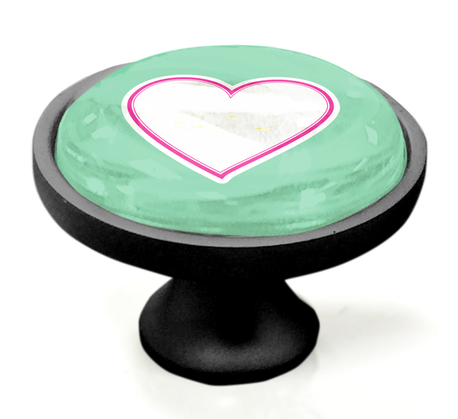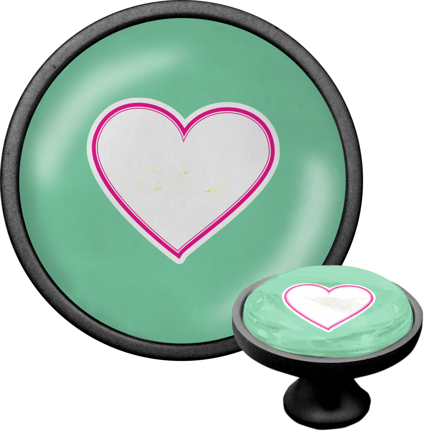 We sell these cabinet pulls in two different colors to better match your room's color scheme. We offer an oil-rubbed bronze base that is black in color, and a satin nickel option, which has a silver color. Your design is displayed across a high gloss vinyl insert that is placed on top of these cabinet handles. We then place a 1 inch thick glass cabochon atop the design, which seals the cabinet knob and makes the colors of your customization stand out. These custom cabinet knobs are approximately 1.3 inches in diameter. Your purchase includes a 1 inch screw that can be used to mount the knob to any cabinet in your home.