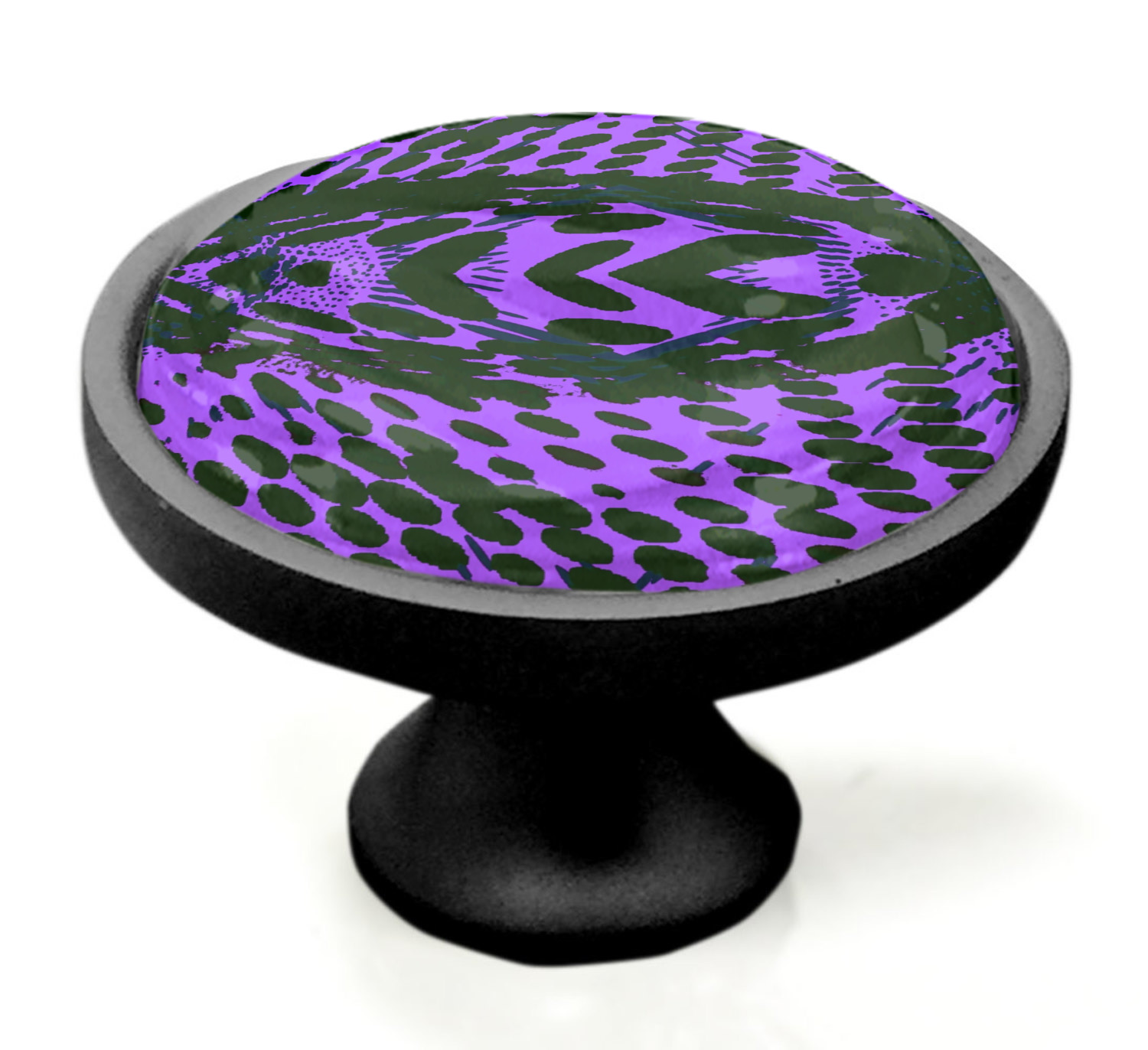 We sell these cabinet pulls in two different colors to better match your room's color scheme. We offer an oil-rubbed bronze base that is black in color, and a satin nickel option, which has a silver color. Your design is displayed across a high gloss vinyl insert that is placed on top of these cabinet handles. We then place a 1 inch thick glass cabochon atop the design, which seals the cabinet knob and makes the colors of your customization stand out. These custom cabinet knobs are approximately 1.3 inches in diameter. Your purchase includes a 1 inch screw that can be used to mount the knob to any cabinet in your home.