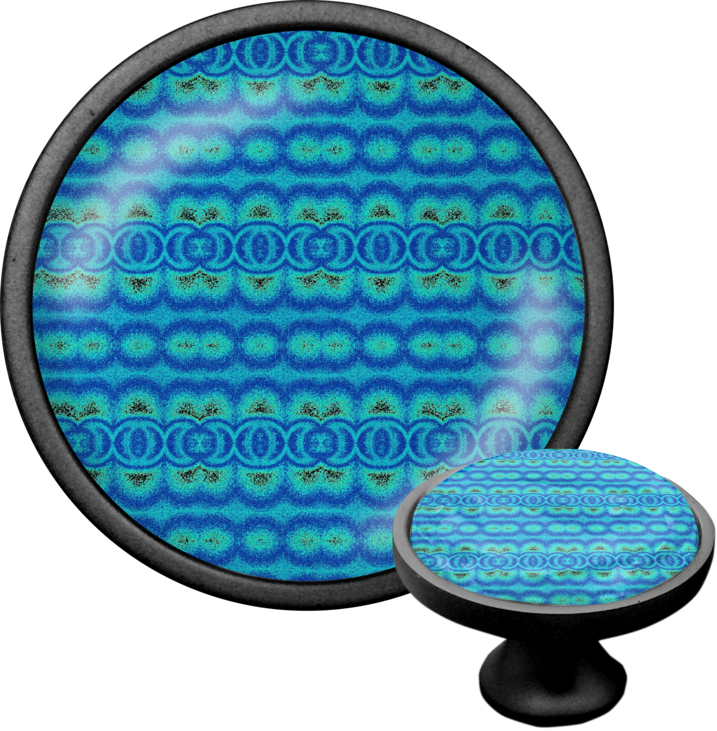 We sell these cabinet pulls in two different colors to better match your room's color scheme. We offer an oil-rubbed bronze base that is black in color, and a satin nickel option, which has a silver color. Your design is displayed across a high gloss vinyl insert that is placed on top of these cabinet handles. We then place a 1 inch thick glass cabochon atop the design, which seals the cabinet knob and makes the colors of your customization stand out. These custom cabinet knobs are approximately 1.3 inches in diameter. Your purchase includes a 1 inch screw that can be used to mount the knob to any cabinet in your home.