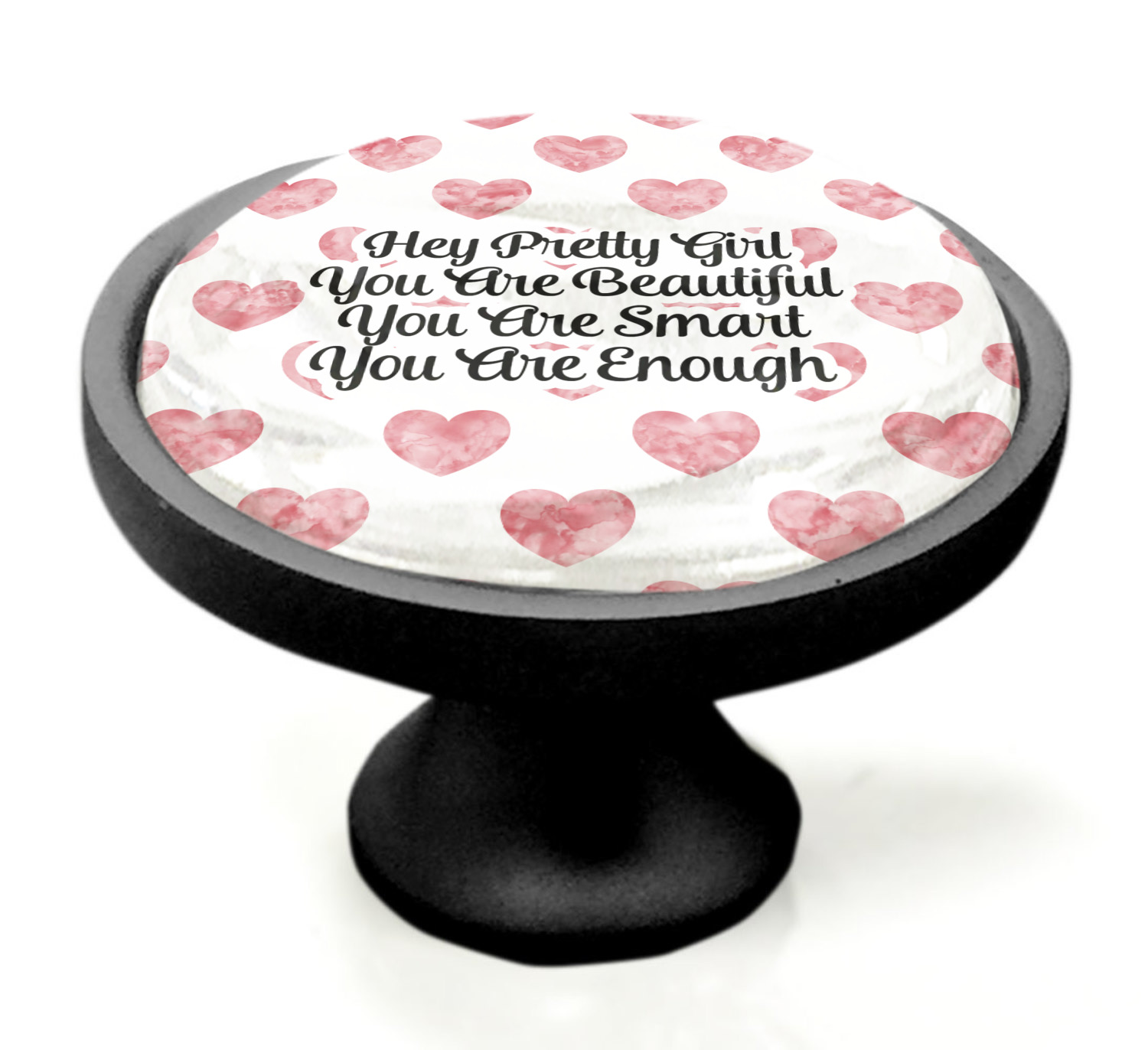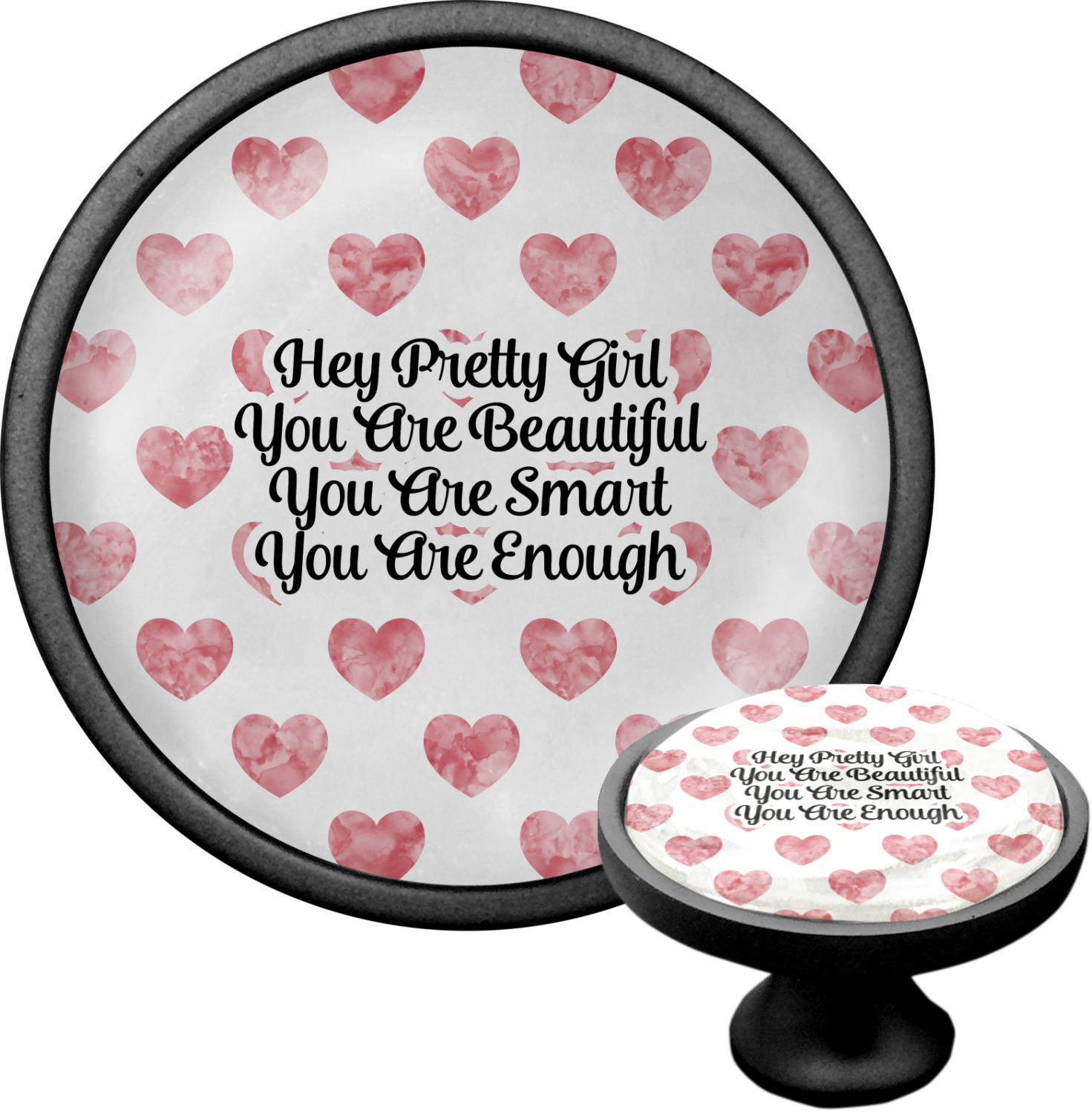 We sell these cabinet pulls in two different colors to better match your room's color scheme. We offer an oil-rubbed bronze base that is black in color, and a satin nickel option, which has a silver color. Your design is displayed across a high gloss vinyl insert that is placed on top of these cabinet handles. We then place a 1 inch thick glass cabochon atop the design, which seals the cabinet knob and makes the colors of your customization stand out. These custom cabinet knobs are approximately 1.3 inches in diameter. Your purchase includes a 1 inch screw that can be used to mount the knob to any cabinet in your home.